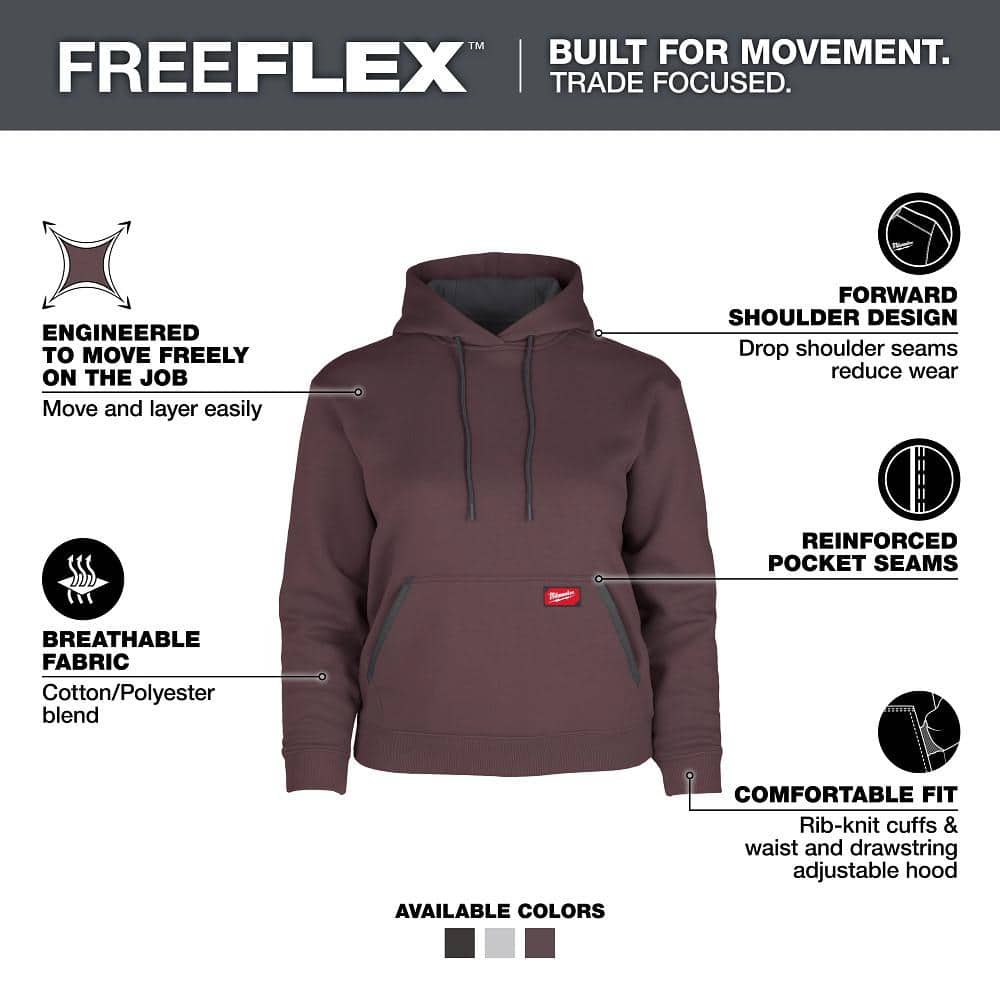 Milwaukee Women’s Large Purple Midweight Cotton/Polyester Pullover Hoodie, FREEFLEX – F251P-L
