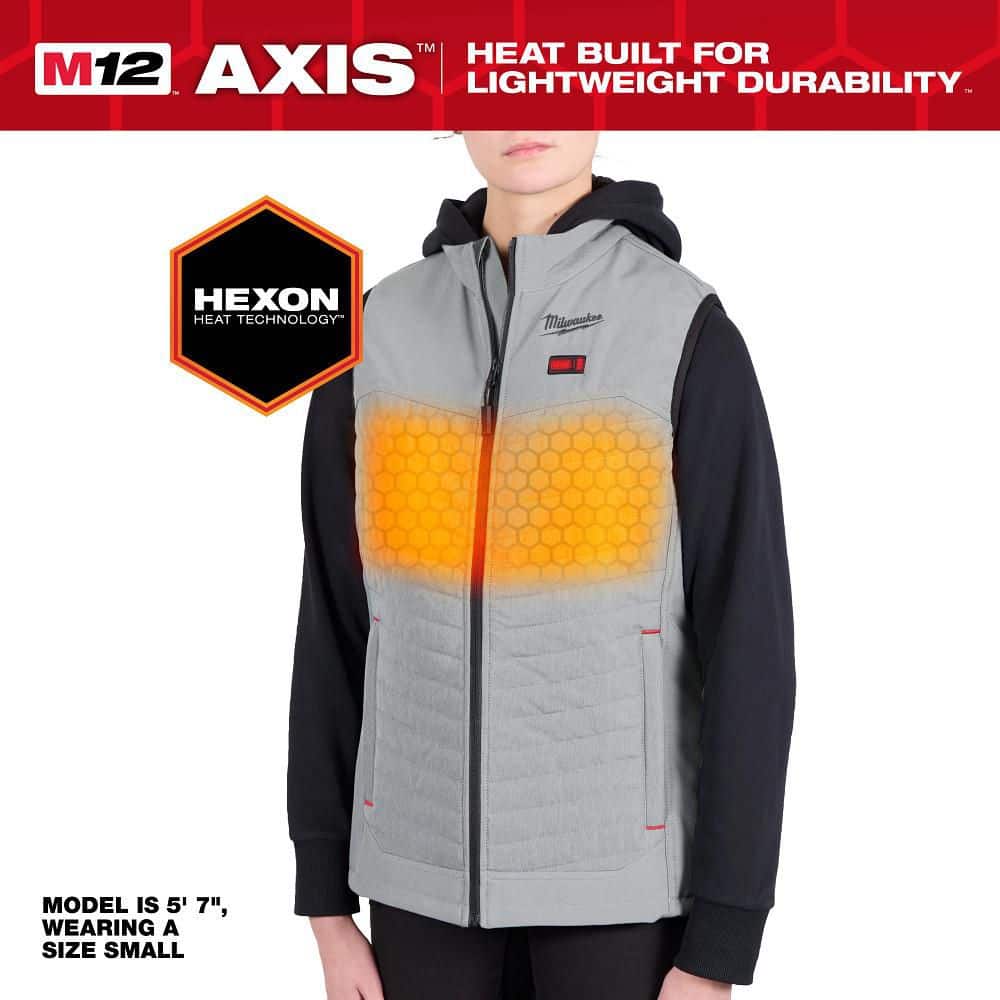 Milwaukee Women’s M12 12V AXIS Gray Heated Vest Kit with HEXON Heat Technology, (1) 3.0Ah Battery & Charger – Size XS
