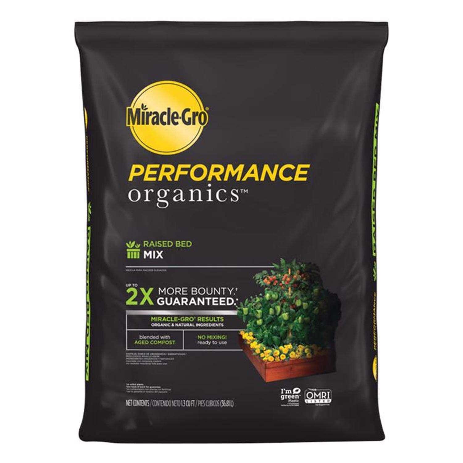 - Miracle-Gro Performance Organics Raised Bed Mix features the Miracle-Gro results you expect with the natural and organic ingredients you want