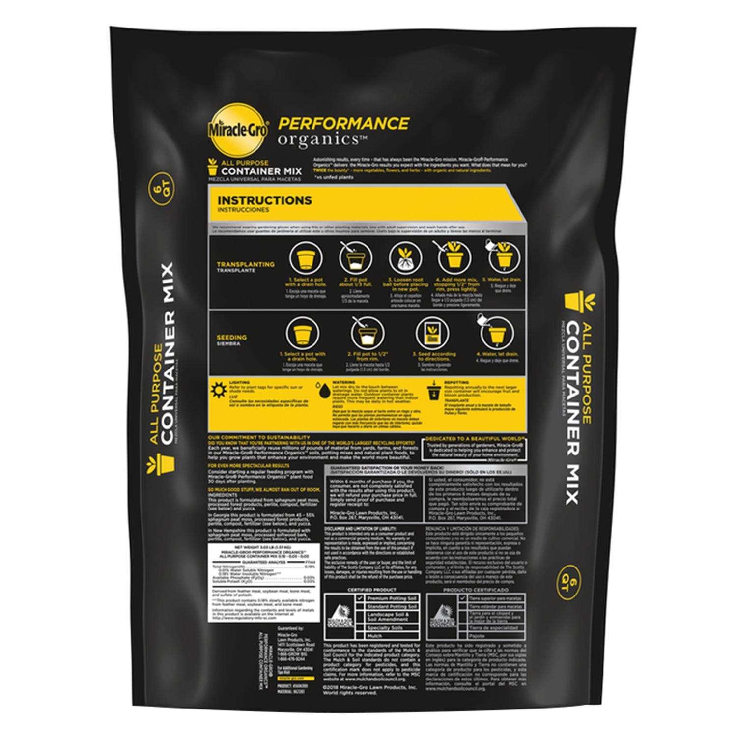 Astonishing results, every time - that has always been the Miracle-Gro mission. Miracle-Gro Performance Organics All Purpose Container Mix delivers the Miracle-Gro results you expect with the organic and natural ingredients you want. Get more bounty - vegetables, flowers and herbs - organically with 3-month plant nutrition and aged compost. Provides 2x more bounty, guaranteed (vs. unfed plants). Use for your indoor and outdoor container plants to give them a great boost with plant food included in the soil that feeds up to 3 months.