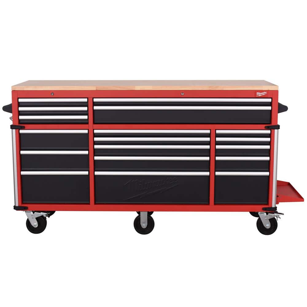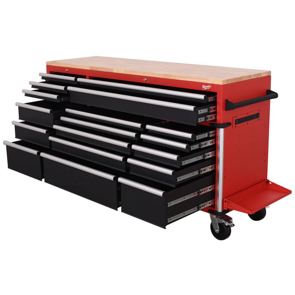 Milwaukee High Capacity 72 in. W x 22.1 in. D 18-Drawer Mobile Workbench with Solid Wood Top