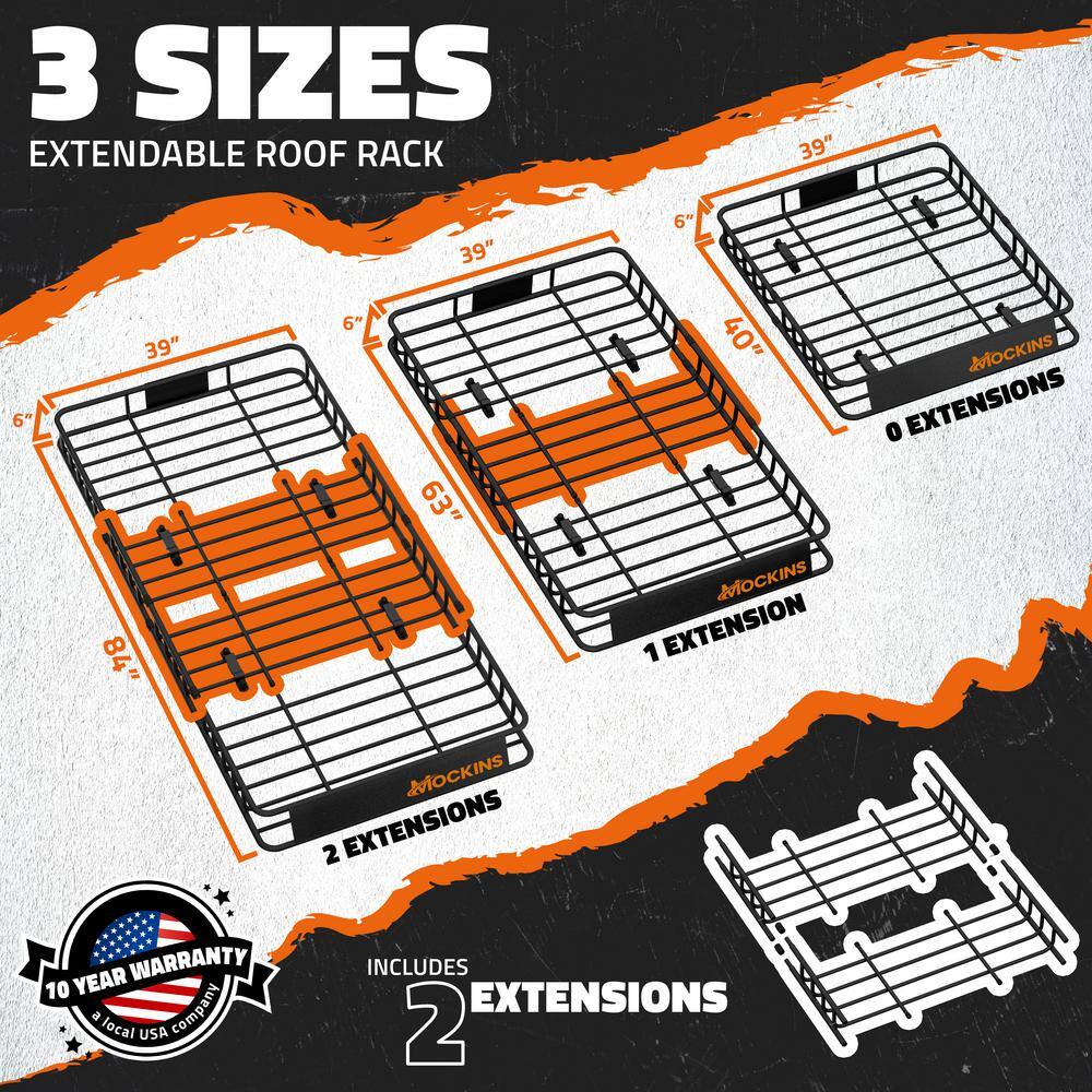 Mockins 84 in. x 39 in. x 6 in. Rooftop Cargo Carrier with Cargo Net and Ratchet Straps, 250 lbs. Cap Roof Luggage Basket
