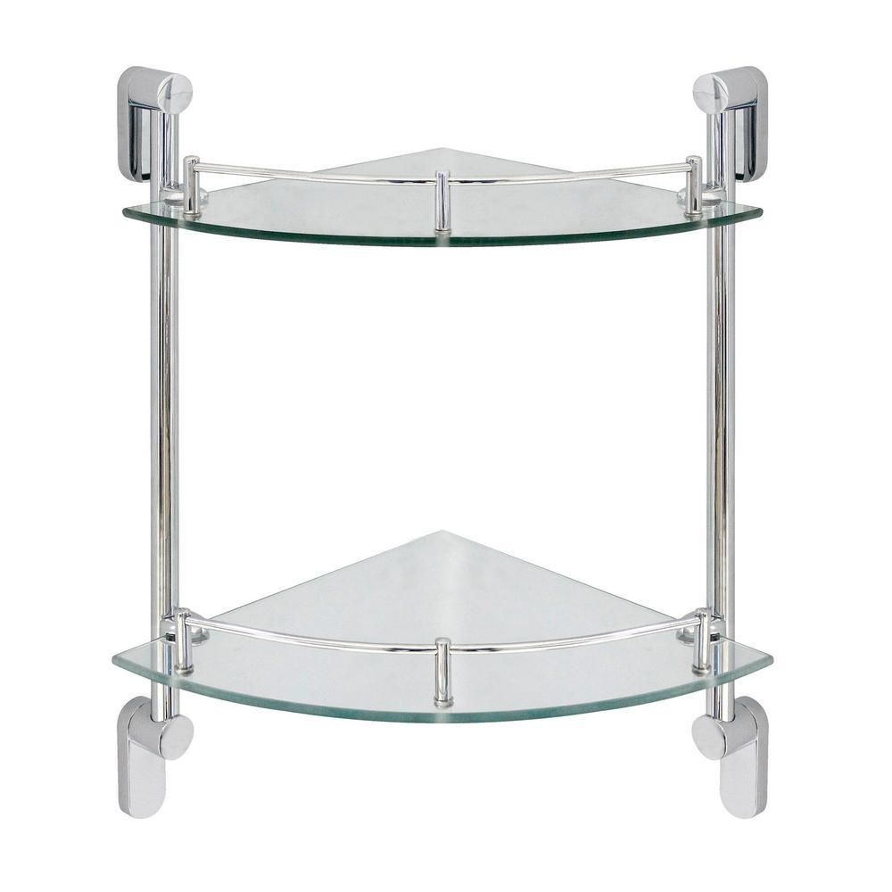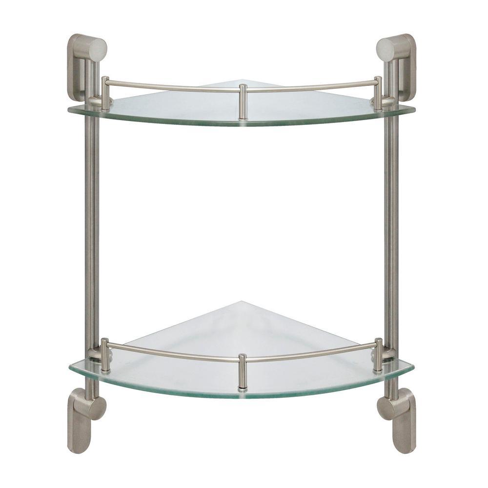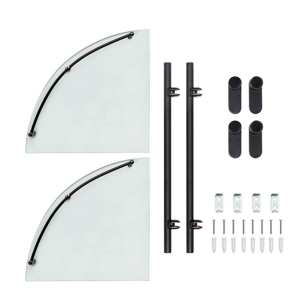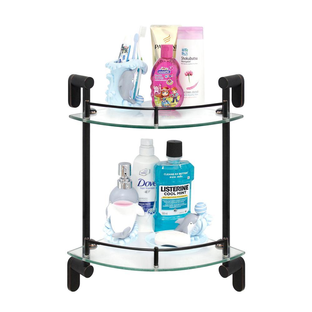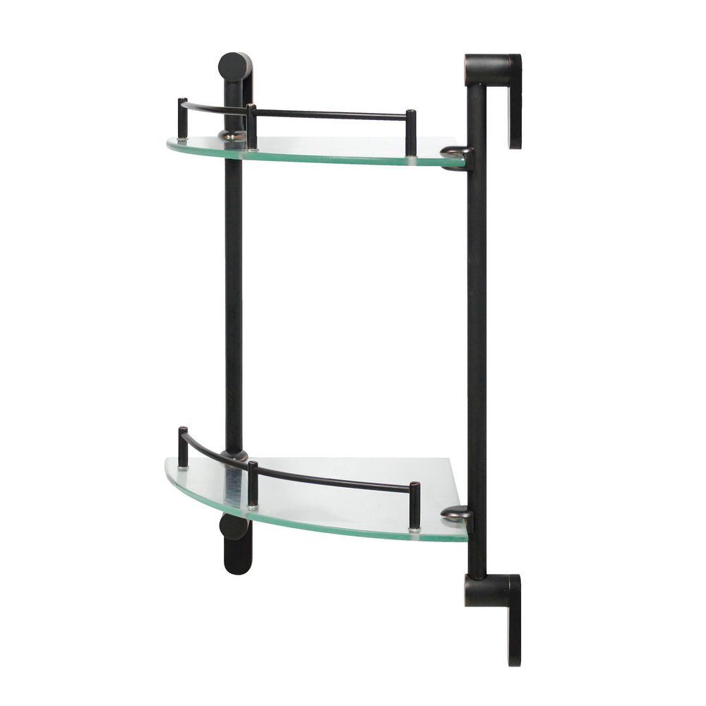 Oval 10.5 in. W Double Glass Corner Shelf with Pre-Installed Rails in Rubbed Bronze