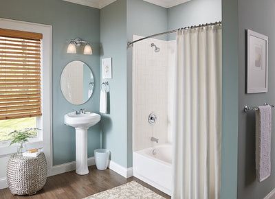 Chrome finish tub and shower faucet from the Adler collection Single-handle allows you to quickly adjust the temperature to your desired level Multi-function showerhead offers several different spray patterns to suit your needs Pressure balance maintains preset temperature when water pressure suddenly drops Meets WaterSense criteria to conserve water without sacrificing performance Limited lifetime warranty ADA-compliant faucet is easier, safer and more comfortable for those with disabilities or limited mobility to use