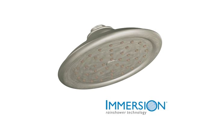 Chrome finish is highly reflective for a mirror-like look that works with any decorating style Limited lifetime warranty: all Moen products come with a limited lifetime warranty against leaks, drips and finish defects 7-in diameter spray head rainshower for exceptional water coverage Advanced, self-pressurizing Moen Immersion™ rainshower technology channels water through the showerhead One-function full spray 2.5 GPM (9.5 L/min) max
