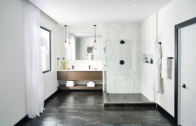 Matte black finish is the perfect complement to modern spaces Mounting system simplifies installation Included template and mounting hardware take the guesswork out of installation