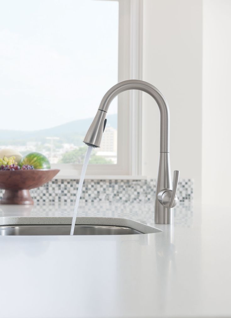 • Pull-down design reaches around your entire sink, offering at-your-fingertips water delivery