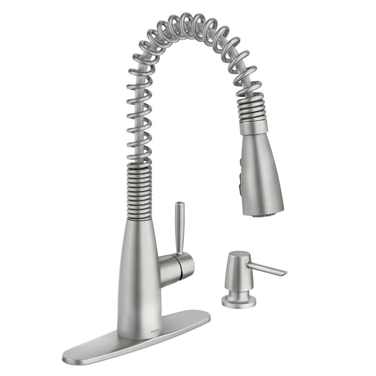 From intimate galley kitchens to large gourmet workstations, the Springvale faucet from MOEN brings a refreshed, modern look to your home. Simple lines on the Springvale Faucet create its contemporary style, while a pull-down wand delivers in-demand functionality. Finished in classic, versatile chrome, this spring faucet is also designed with Power Clean technology that delivers 50% more spray power than faucets without Power Clean, ensuring efficient washing with less effort.