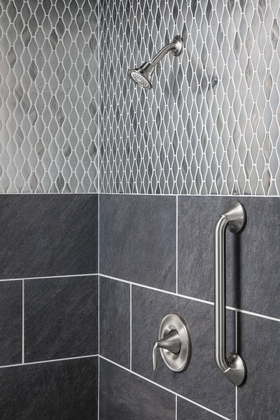 Secure your bath with the Moen Eva 12-inch grab bar in a warm brushed nickel finish. ADA-compliant and designed for reliability, its stainless steel construction supports stability in showers and around tubs.