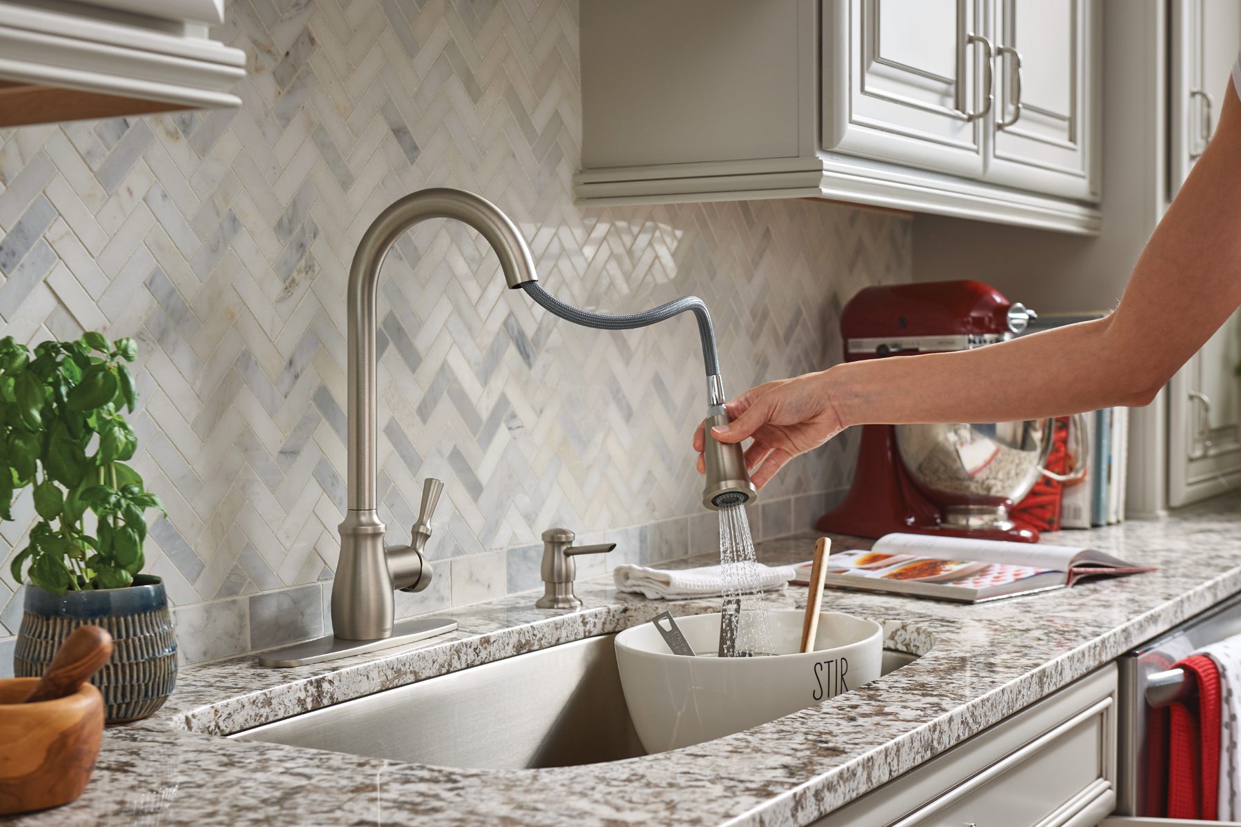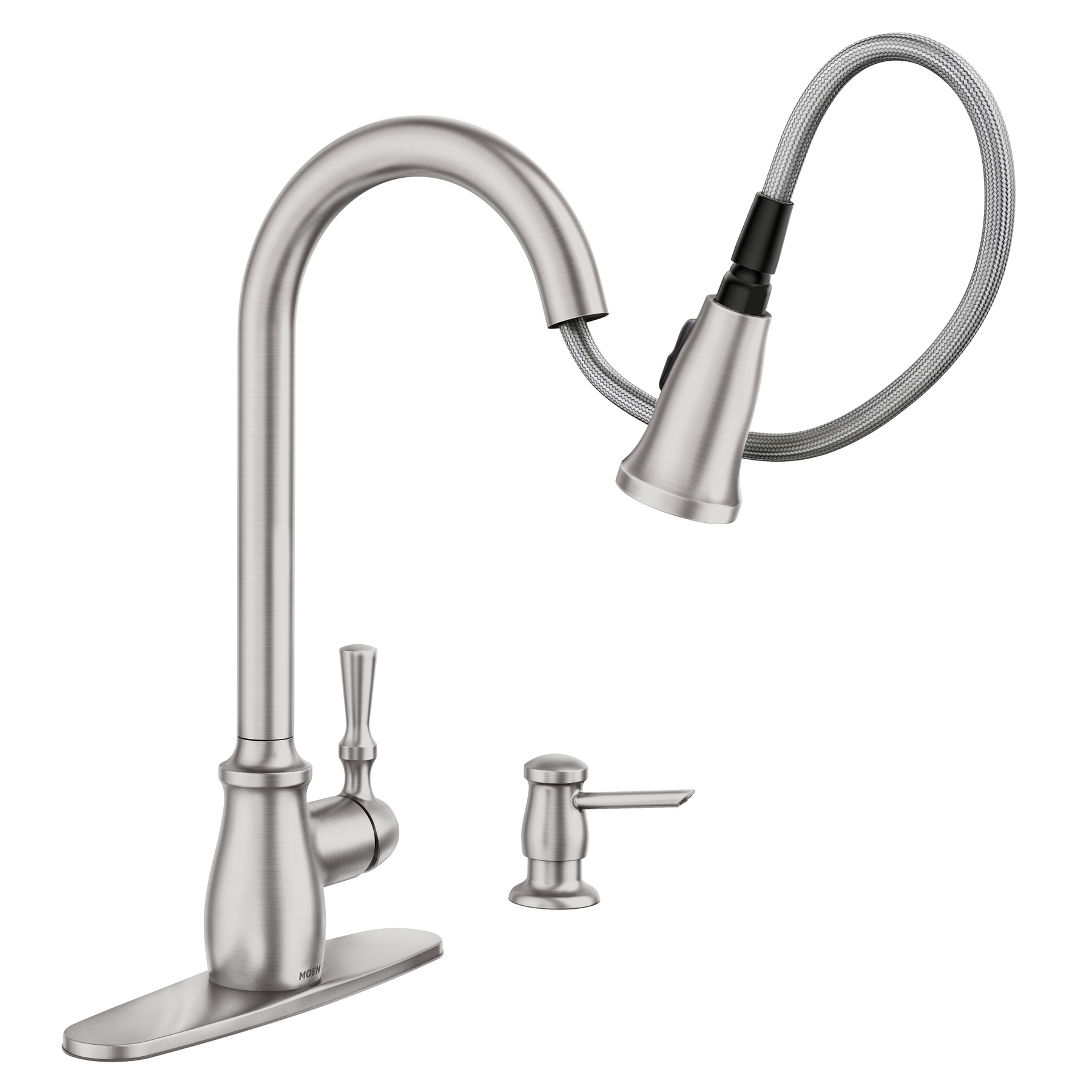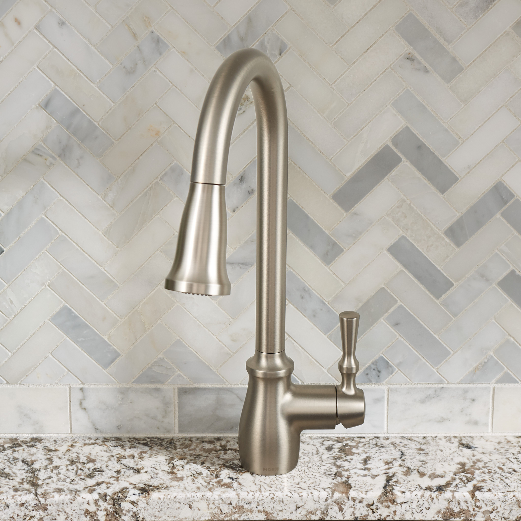 Bring elevated performance and classic style to your sink with Moen’s Fieldstone pull-down kitchen faucet. The Spot Resist Stainless finish keeps the fixture looking clean, while Reflex technology and Power Clean provide smooth operation and stronger spray for everyday tasks.