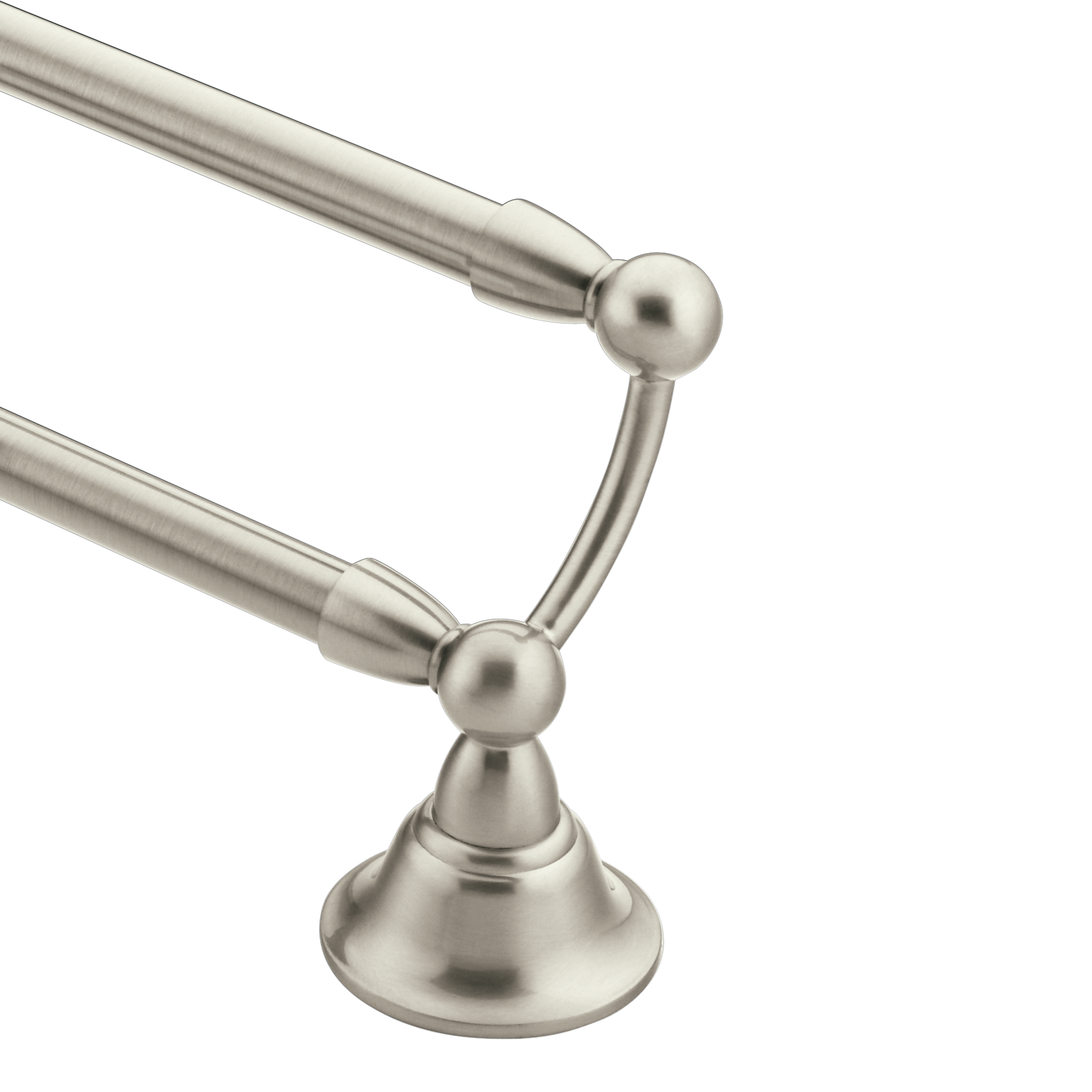 Elevate bathroom storage with the Moen Sage 24-inch double towel bar in Spot Resist Brushed Nickel. Its corrosion-resistant finish resists fingerprints and water spots, while sturdy metal posts and included hardware make wall-mount installation straightforward.