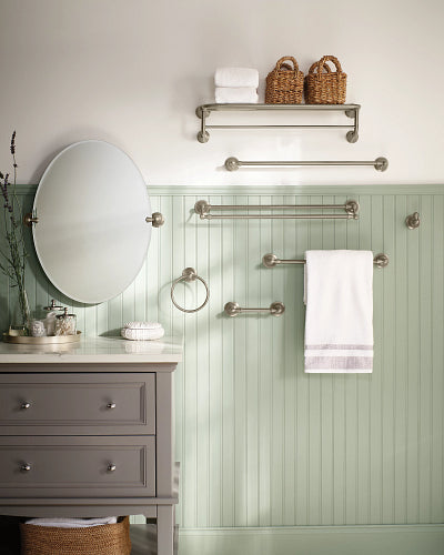 The Sage double towel bar whispers elegance with its streamlined silhouette and velvety brushed nickel sheen. I love the gentle arc detail that bridges the rails—subtle, sculptural, and timeless. Pair it with crisp white towels and soft eucalyptus accents for a spa-like moment on your wall. It’s a small luxury that makes the everyday ritual feel beautifully considered.