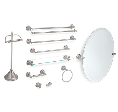 A: The brushed nickel finish provides the warm look of stainless and coordinates well with most stainless and nickel bathroom fixtures.