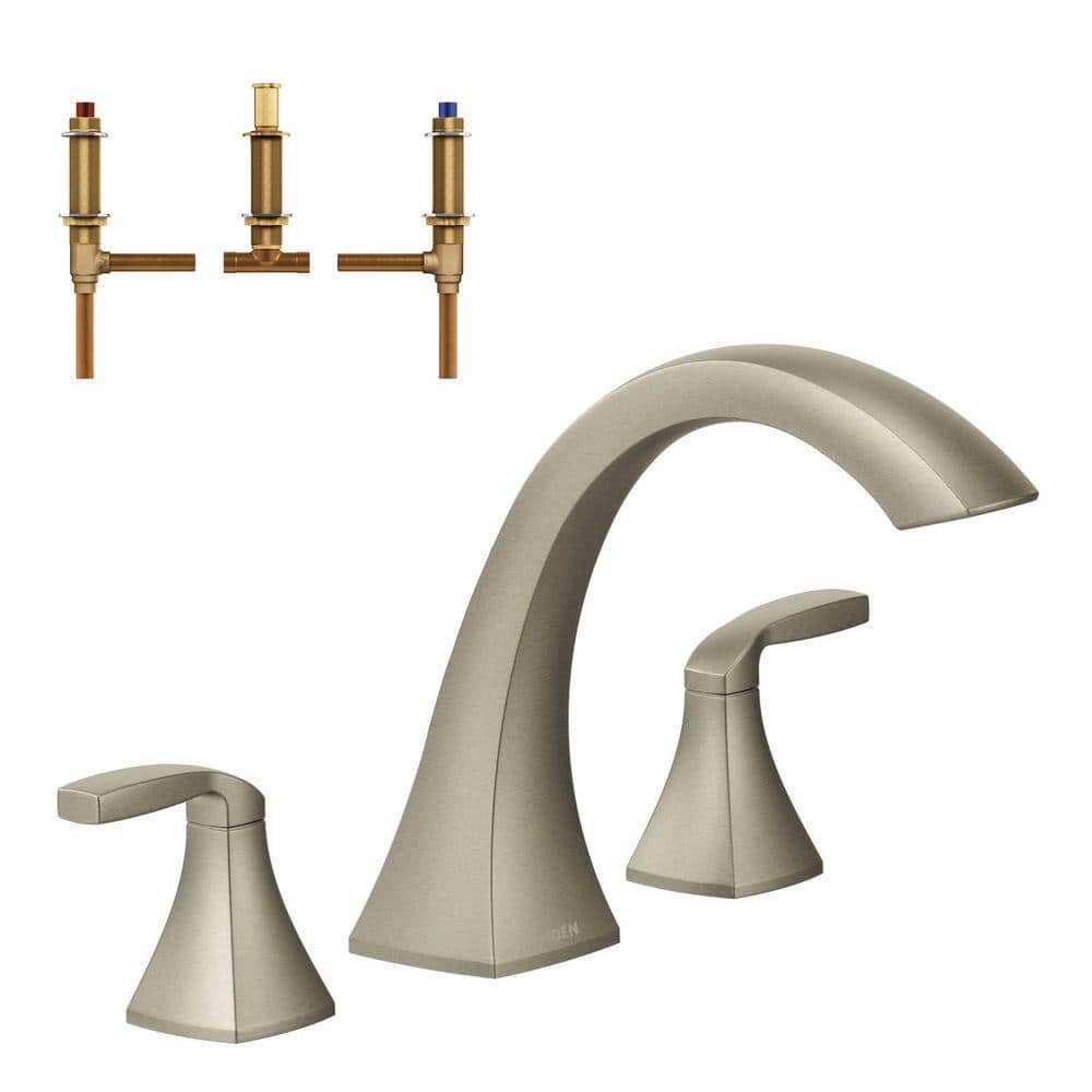 Voss 2-handle high-arc Roman tub faucet with valve, brushed nickel
