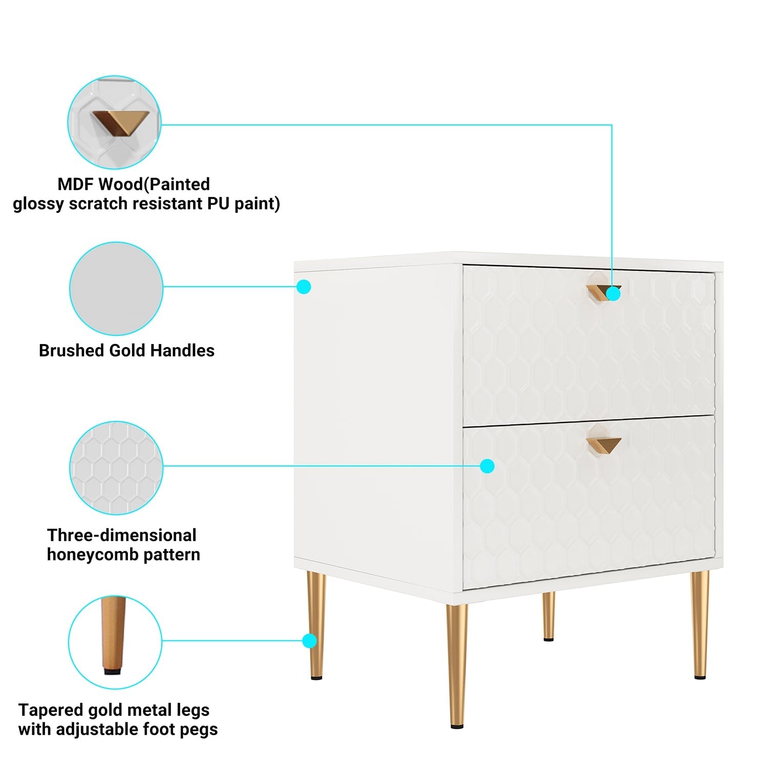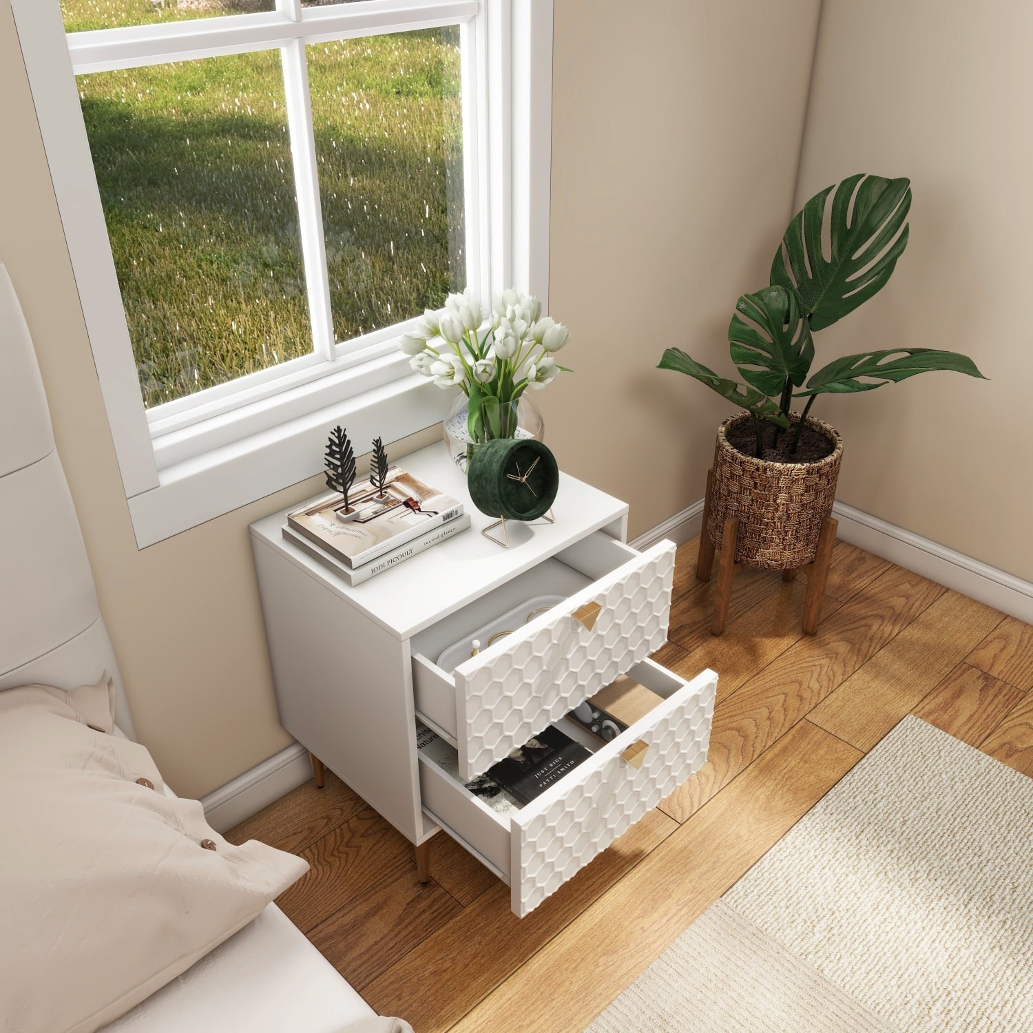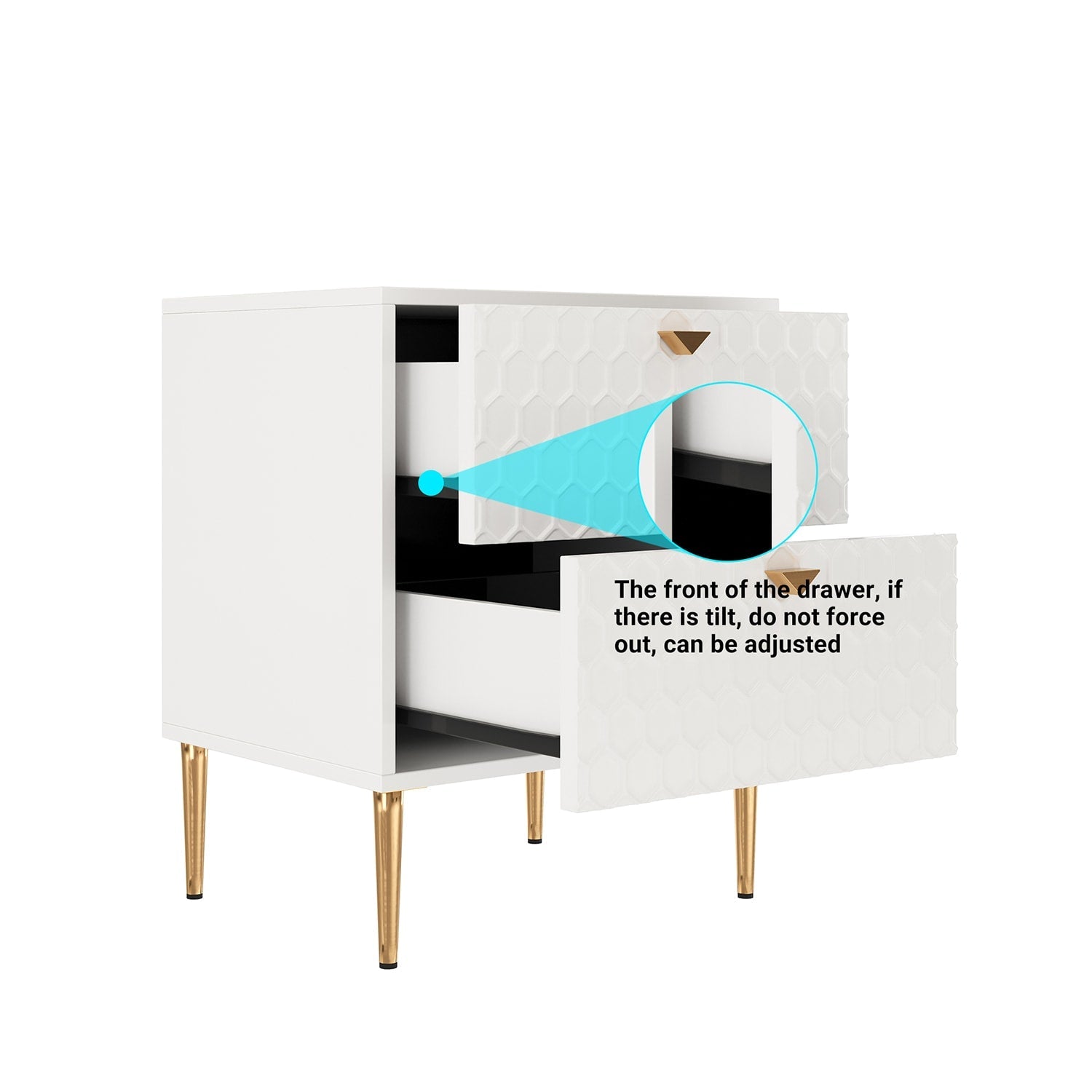 Elevate your space with the Mondawe White 2-Drawer Cabinet Chest, a versatile storage solution with a touch of elegance. Featuring a stylish 3D embossed design and gold accent legs, this cabinet is perfect for organizing your essentials in any room. Easy to assemble, it brings a chic yet functional element to modern interiors.