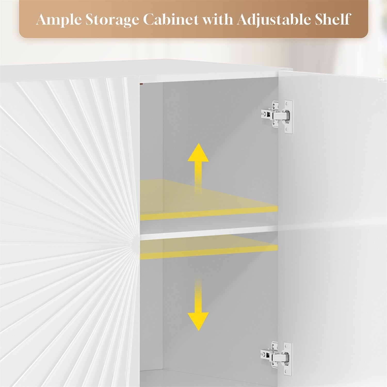 Upgrade your space with the Mondawe 29.5" Accent Cabinet, featuring a hand-carved geometric pattern and a chic white finish. Designed for versatility, this cabinet blends modern and industrial styles while providing ample storage with adjustable shelves.