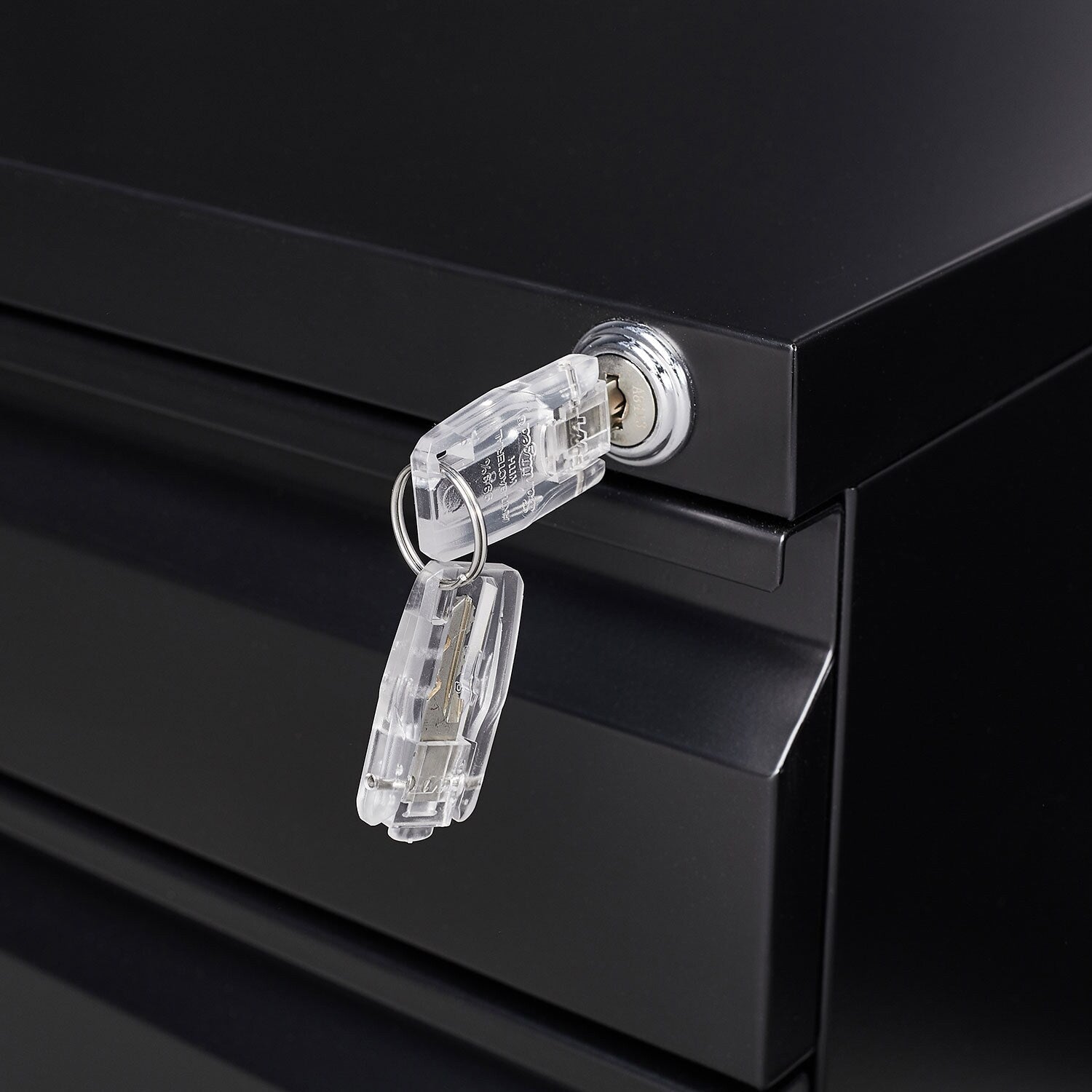 • Security: One lock with two keys secures all three drawers, providing peace of mind.