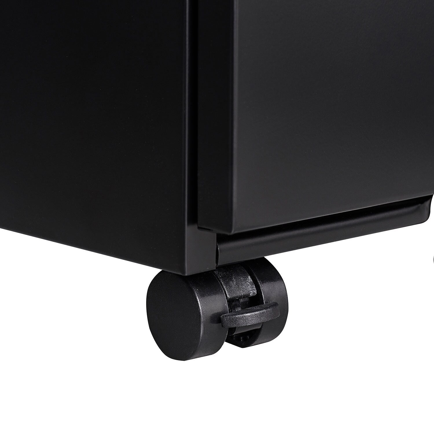 The Mondawe Black 3-Drawer File Cabinet is a sleek, secure storage solution perfect for both home and office environments. Designed with modern aesthetics and practicality in mind, this metal cabinet offers ample space for organizing your documents with easy maneuverability due to its smart caster system.