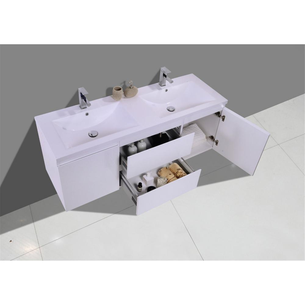 Bohemia 60 in. W Bath Vanity in High Gloss White with Reinforced Acrylic Vanity Top in White with White Basins