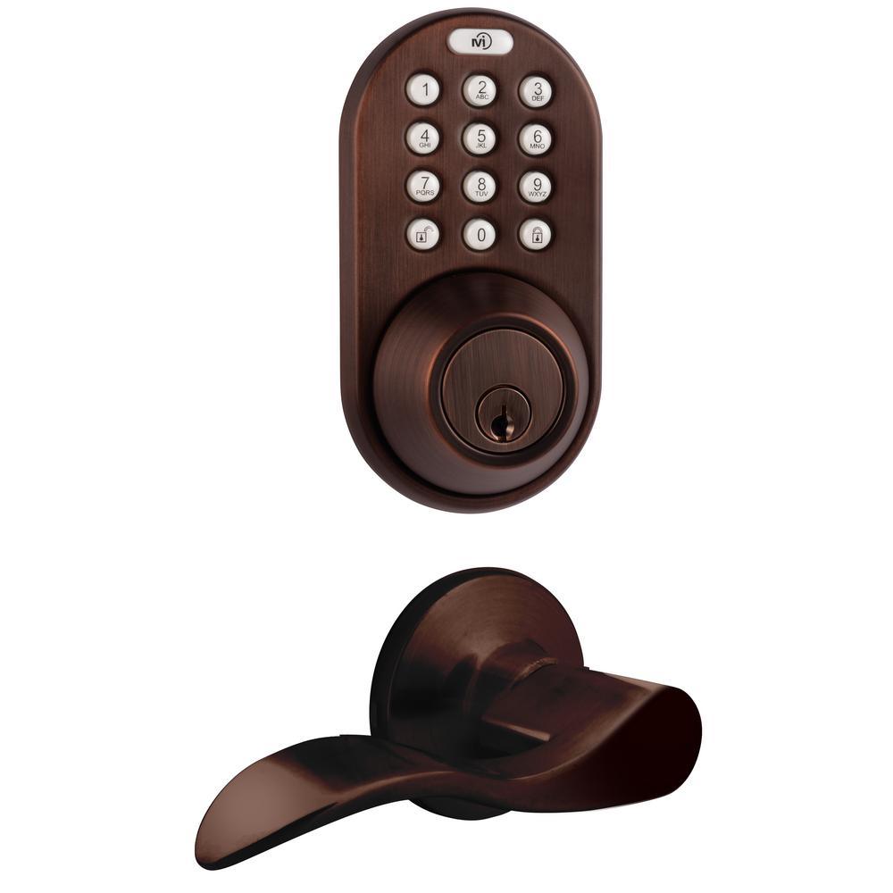 Oil Rubbed Bronze Keyless Entry Deadbolt and Door Handleset Lock with RF Remote Control and Electronic Digital Keypad