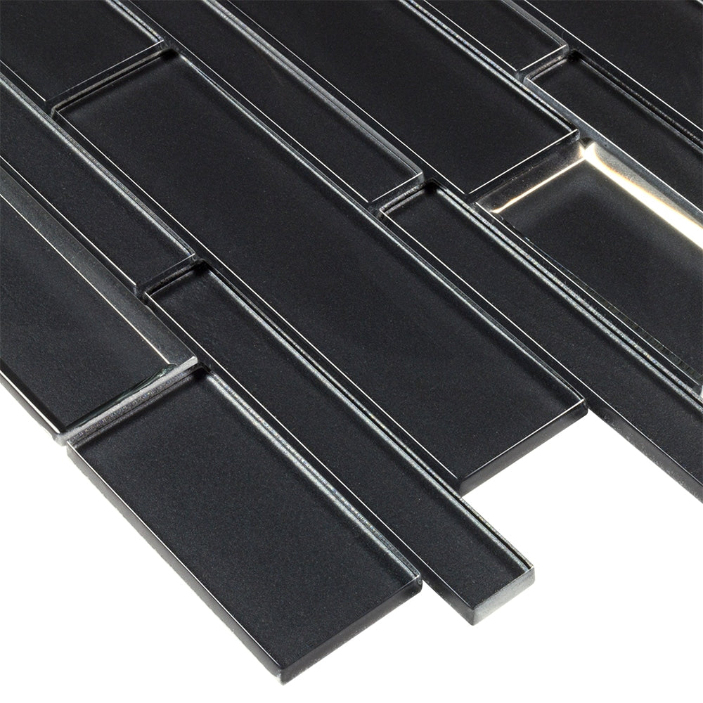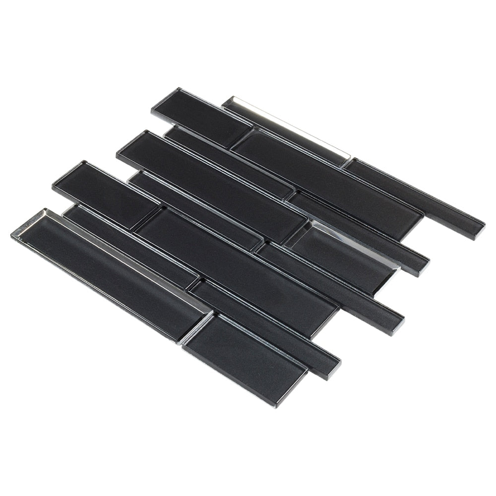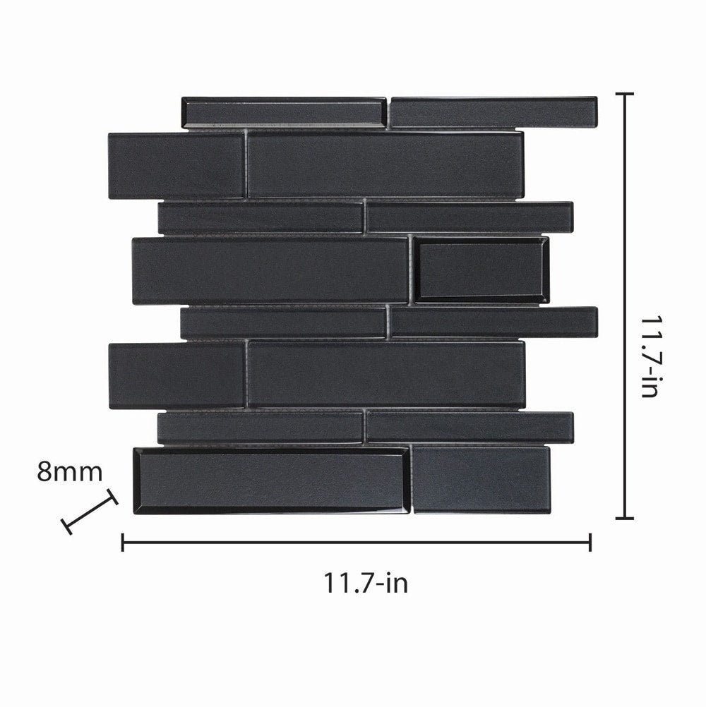 Sleek black glass mosaic tile with a glossy, mirrored-bevel mix adds modern drama to backsplashes and feature walls. Impervious and waterproof, the 11.75-in x 11.75-in mesh-mounted sheet installs easily with thinset for kitchens, baths, and showers.
