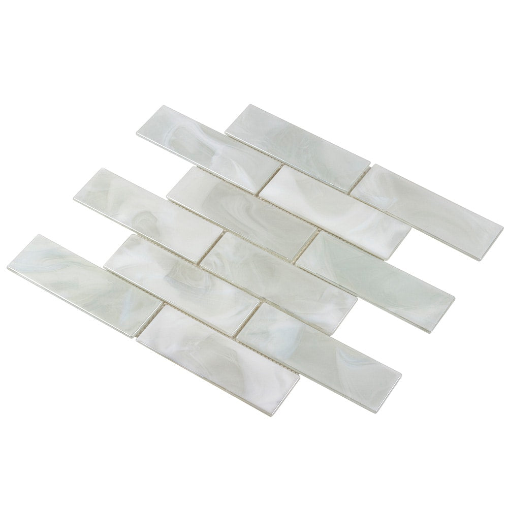 Elida Ceramica White 12-in x 12-in Glossy Glass Brick Mosaic Wall Tile, 1.06-sq ft