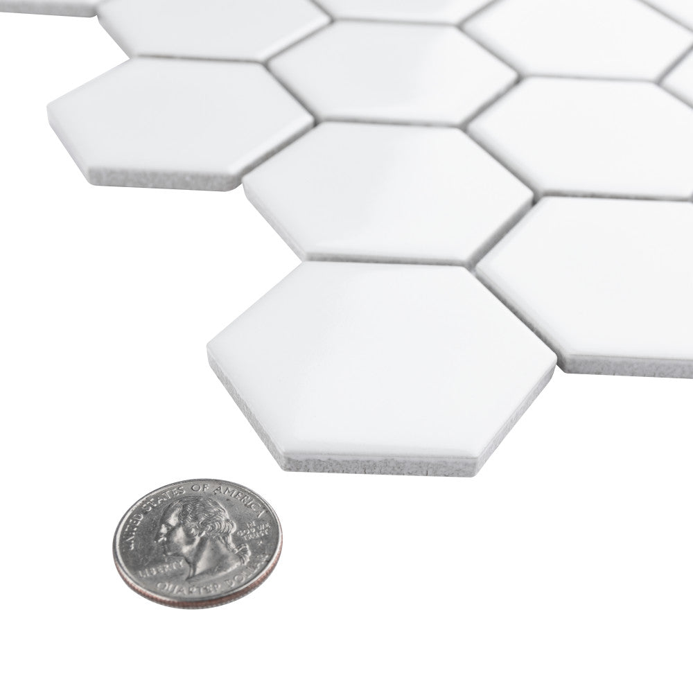 Metro Hex 2" Glossy White Porcelain Mosaic Tile