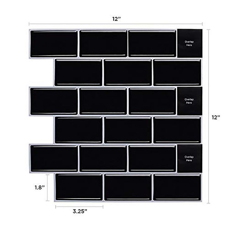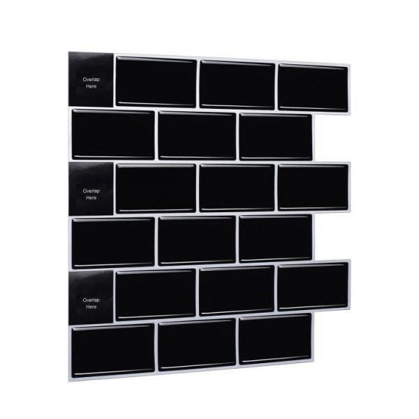 Subway Black 12 in. W x 12 in. H Peel and Stick Decorative Mosaic Wall Tile Backsplash (5 Tiles)