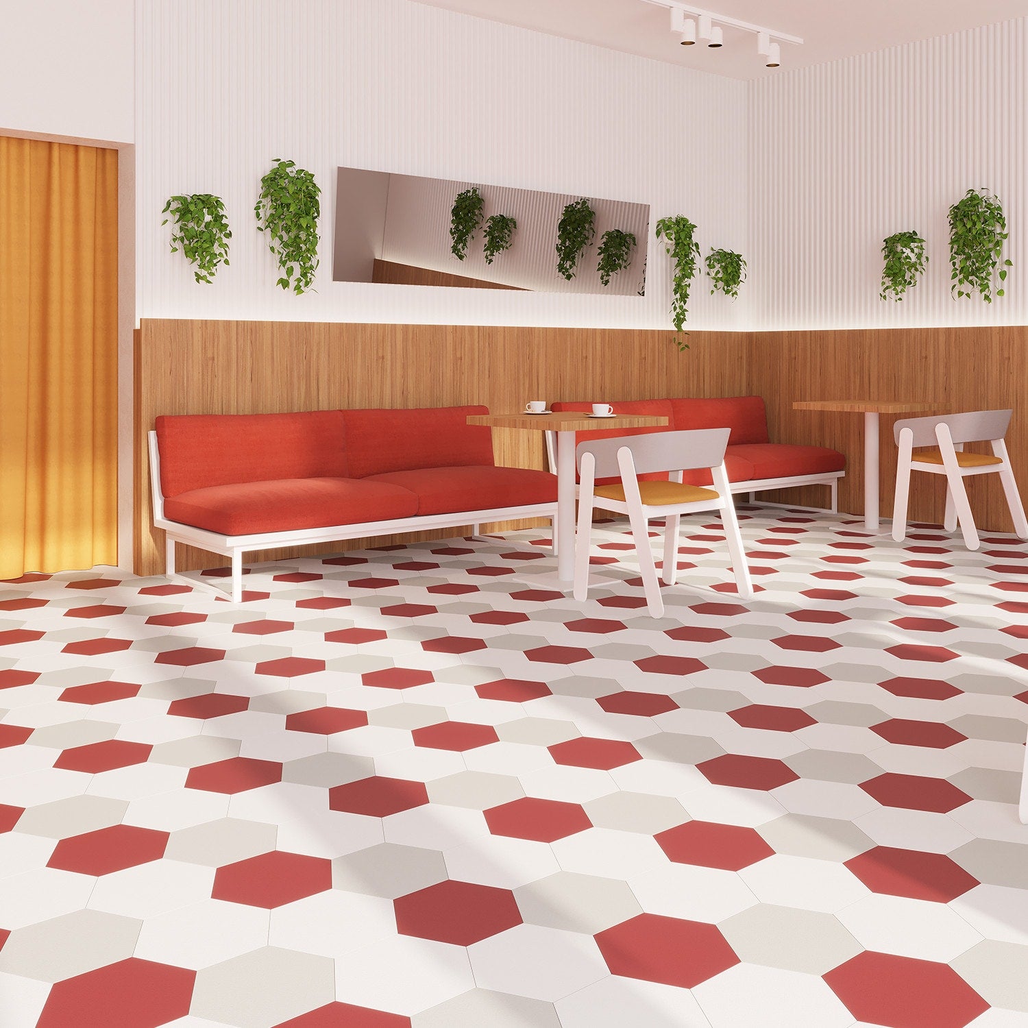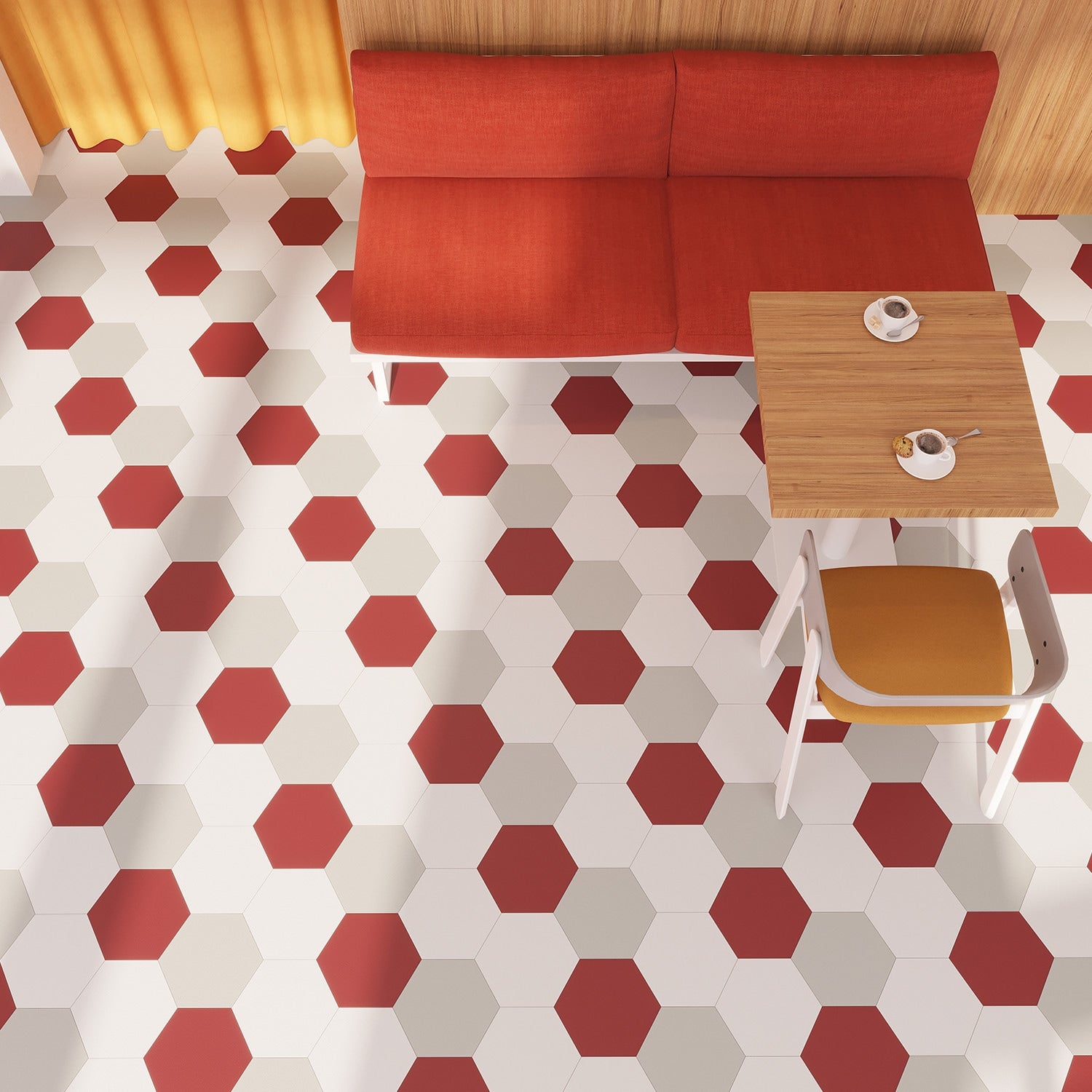 MosaiCore Berry is a vibrant punctuation mark for the floor—its saturated red hexagons create rhythm and movement across a room. The silky, low-sheen surface feels refined while the crisp edges keep the pattern graphic and modern. Mix with soft neutrals or wood tones to compose a bespoke mosaic that anchors hospitality and home spaces alike. It’s a statement-making essential that marries high design with hardworking luxury.
