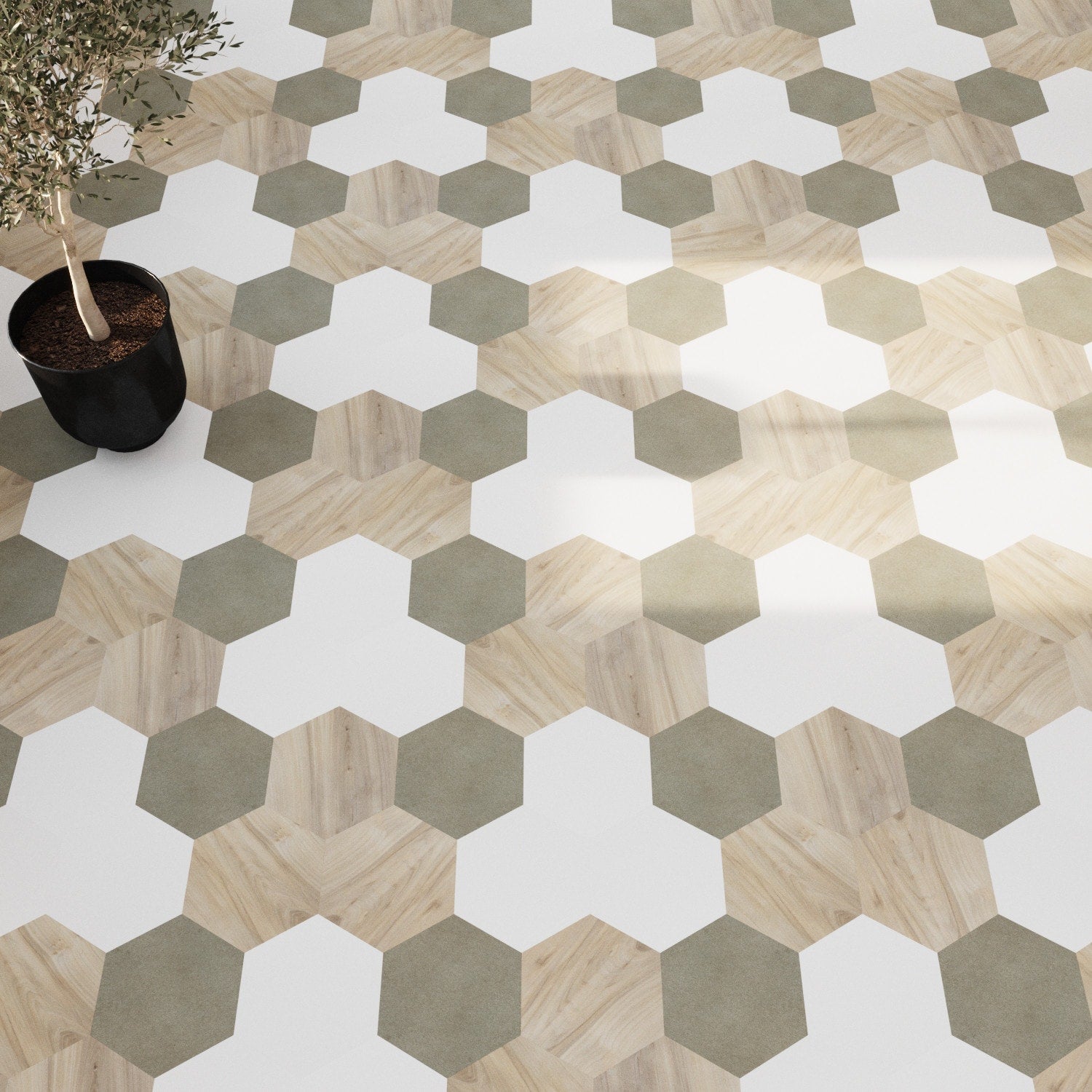 The Snow hue sets a serene, gallery-like foundation while the hexagonal form brings crisp graphic rhythm to the floor. Its low-gloss, solid surface feels refined yet resilient, inviting layered textures and sculptural furnishings. Pair with warm woods and matte metals for an elevated contrast or intermix colors for a bespoke mosaic. This is a chic, hardworking essential for luxurious everyday environments.