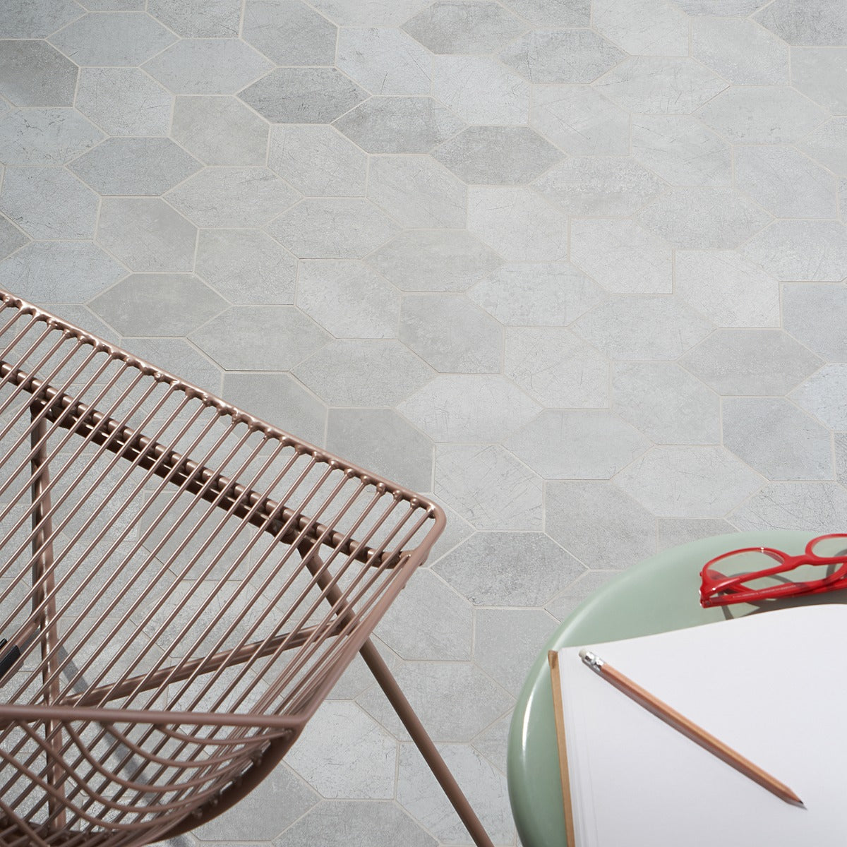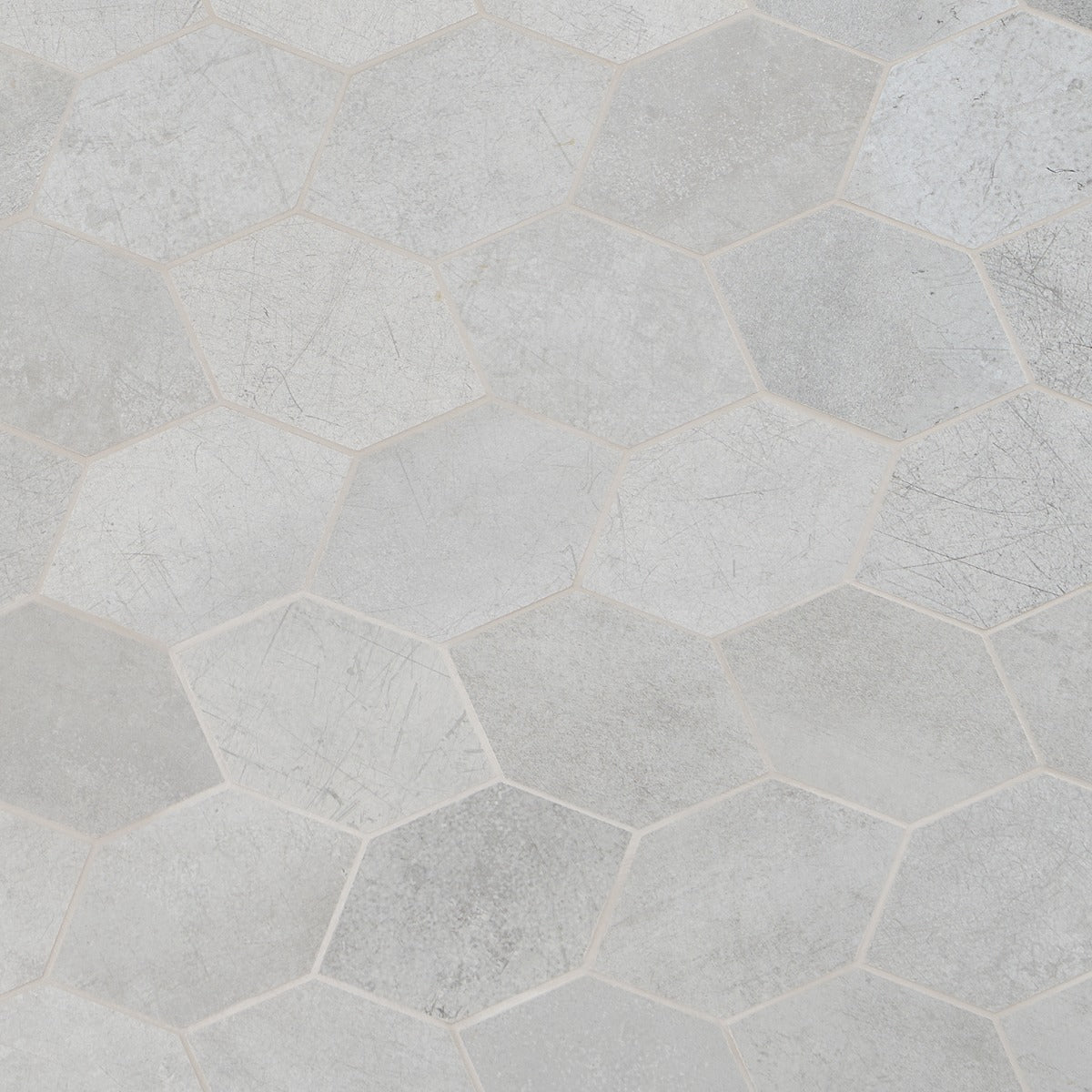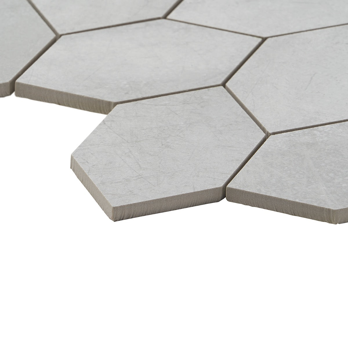 Bond Nimbus Silver Foliage Hexagon Matte Porcelain Mosaic Tile - Lux Tile