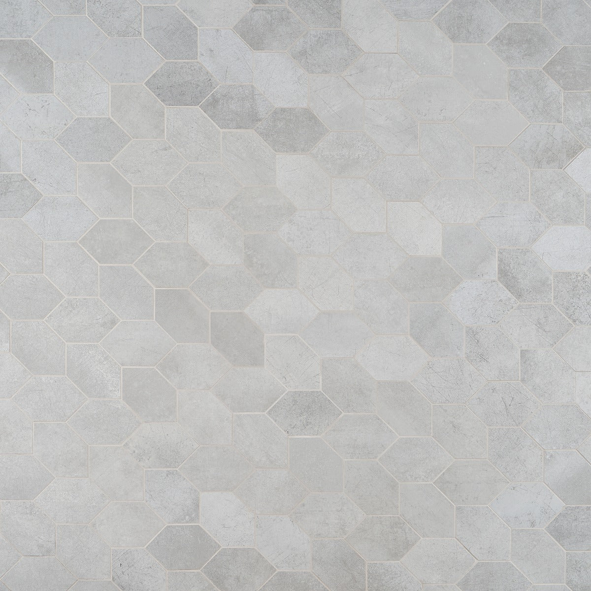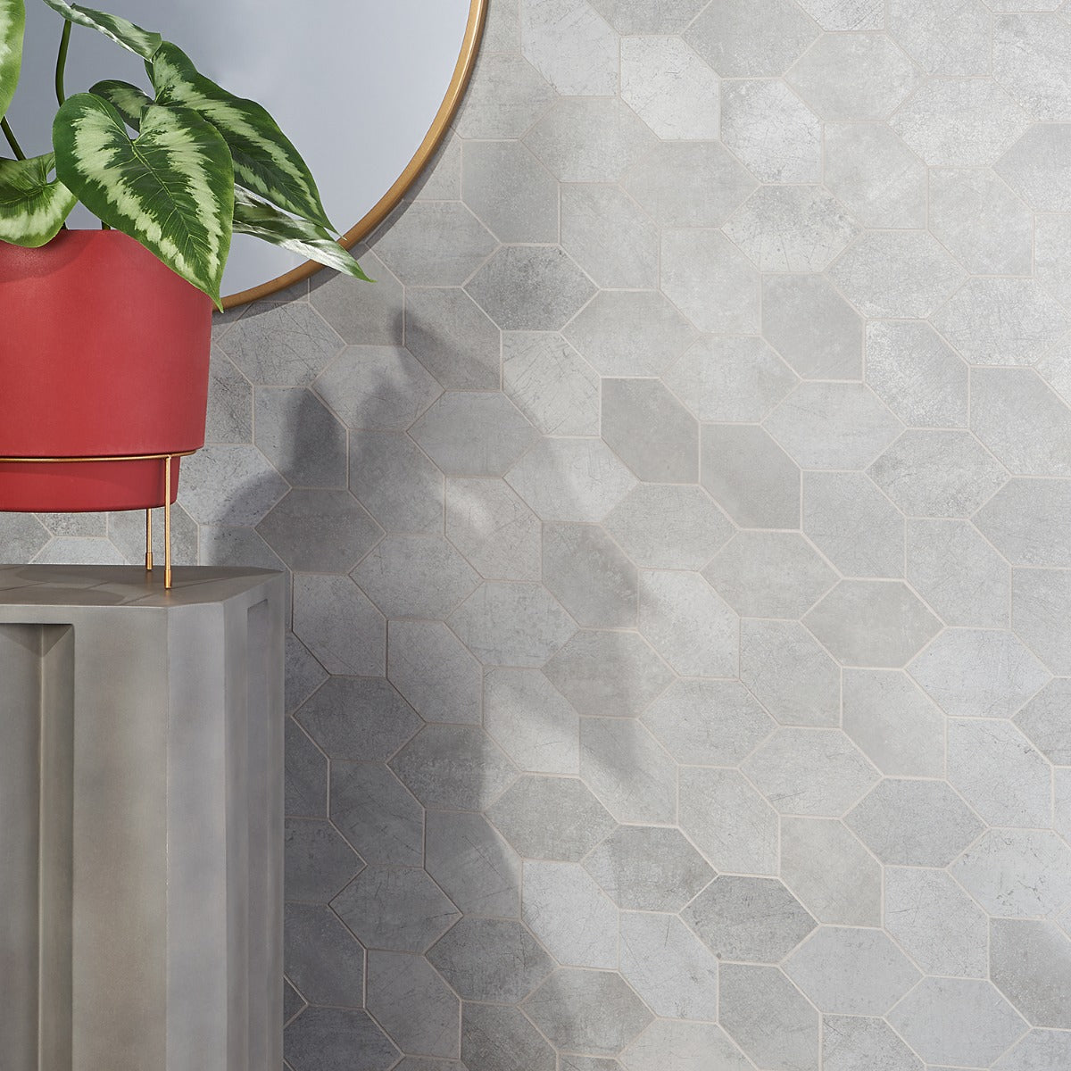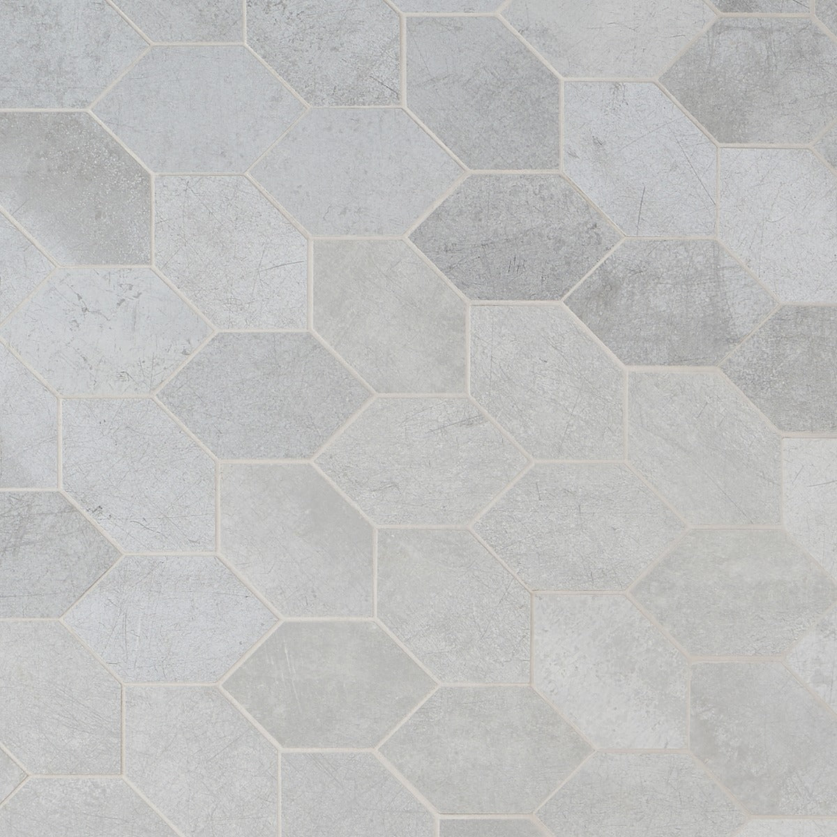 Transform your space with the elegant and durable Bond Nimbus Silver Foliage Hexagon Matte Porcelain Mosaic.