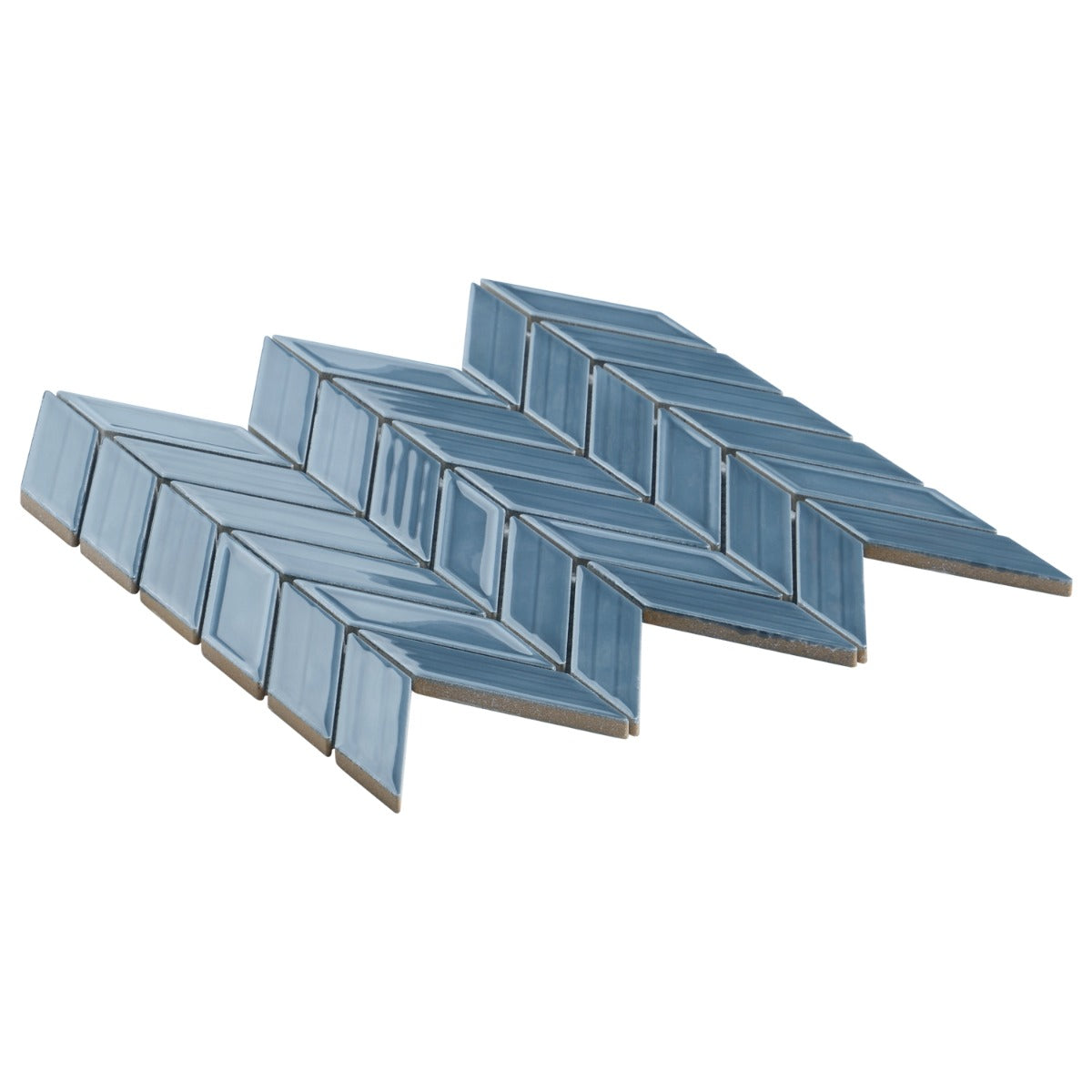 The Brookline Chevron Coastal Blue Mosaic Tile is a masterpiece of modern design. Its chevron pattern and glossy light blue glaze create a dynamic visual effect, perfect for adding depth and sophistication to any room. Pair it with natural wood accents for a coastal vibe or sleek metallics for a contemporary look. This tile is not just a design element; it's a statement of refined taste and timeless elegance.