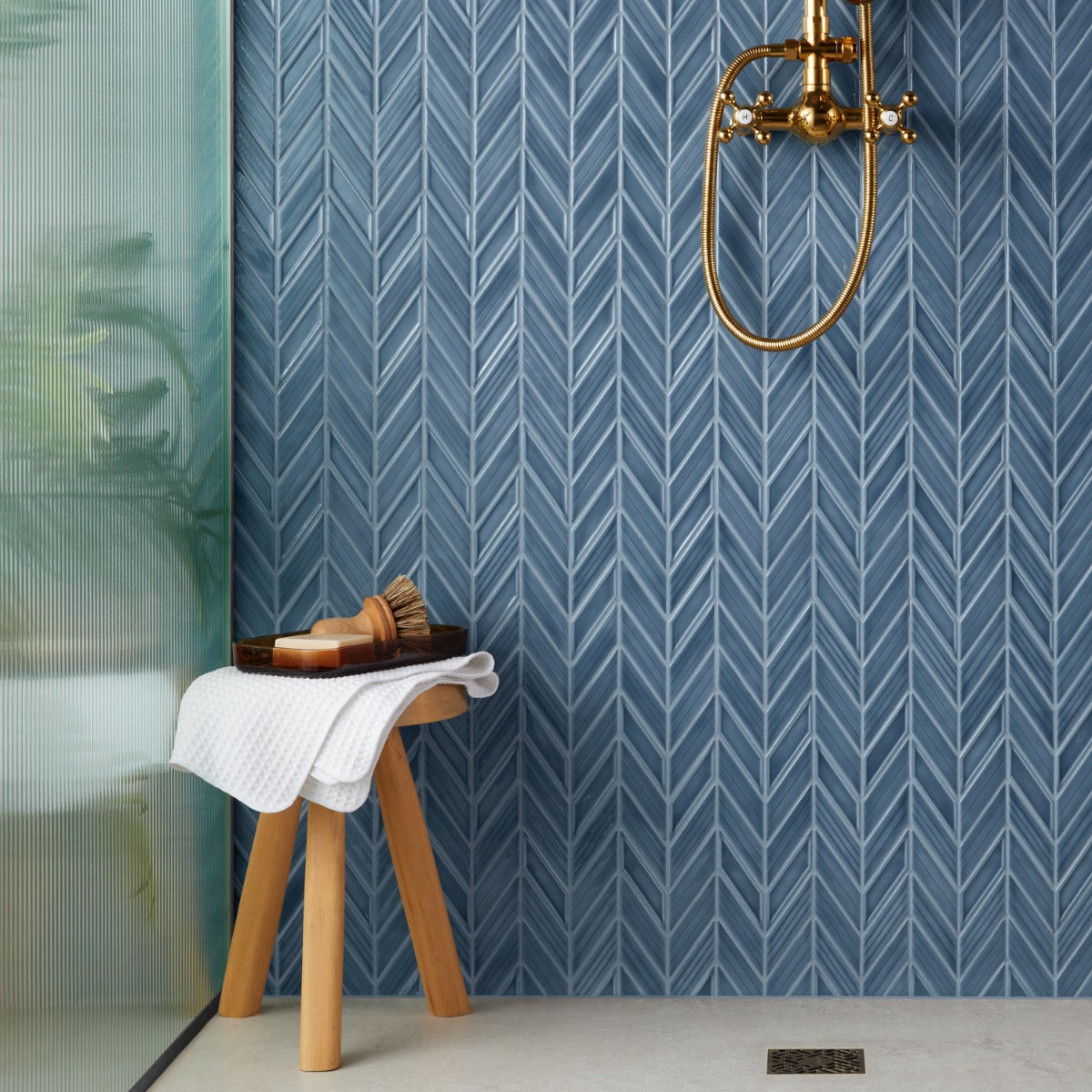 Transform your space with the Brookline Chevron Coastal Blue Mosaic Tile—order now to elevate your design!