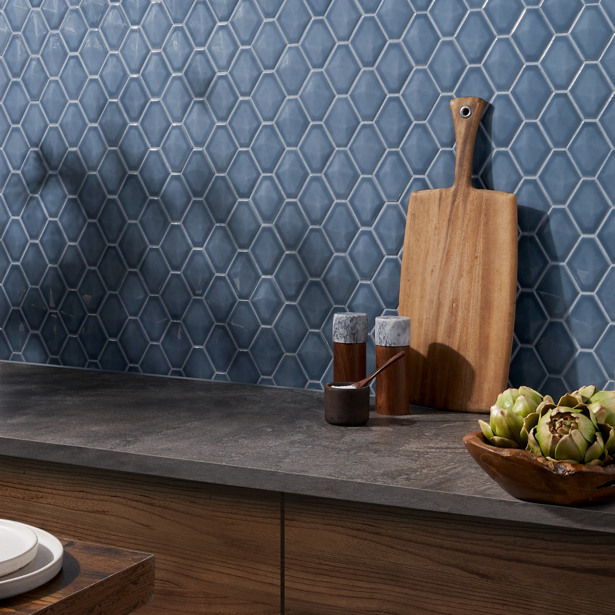 The Brookline Diamond Coastal Blue Mosaic Tile is a masterpiece of modern design. Its glossy finish and dimensional diamond pattern create a captivating interplay of light and texture, perfect for transforming any wall into a statement piece. Pair it with neutral tones to let its rich blue hue shine, or use it as a bold accent in a contemporary setting. This tile is not just a surface—it's an artful addition to luxurious living.