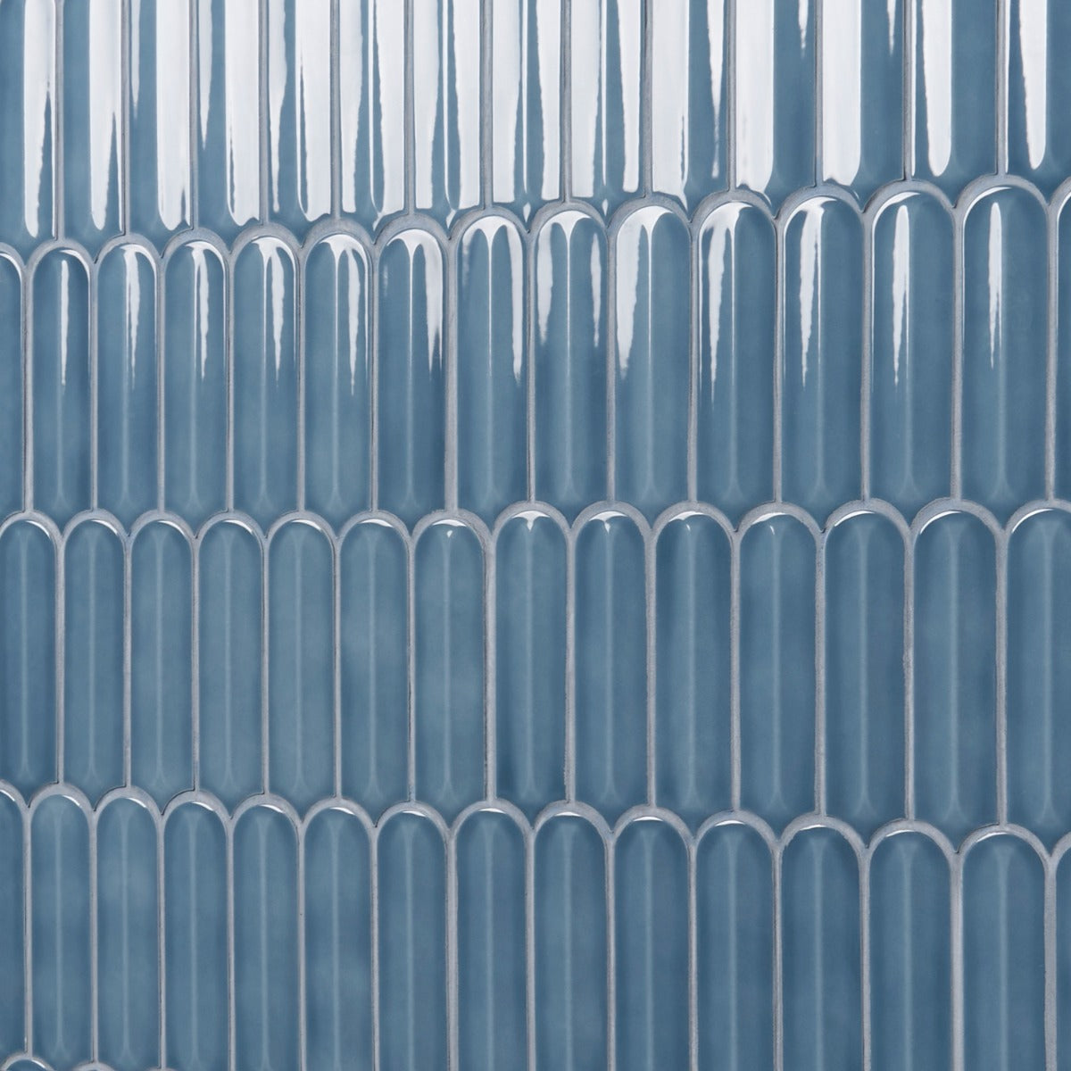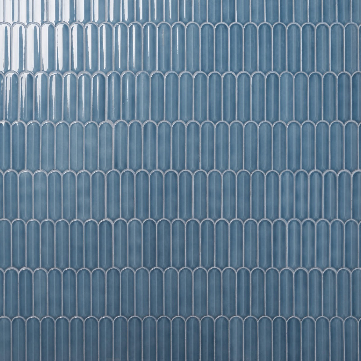 Brookline Feather Coastal Blue Fish Scale Glossy Ceramic Mosaic Tile - 2x7