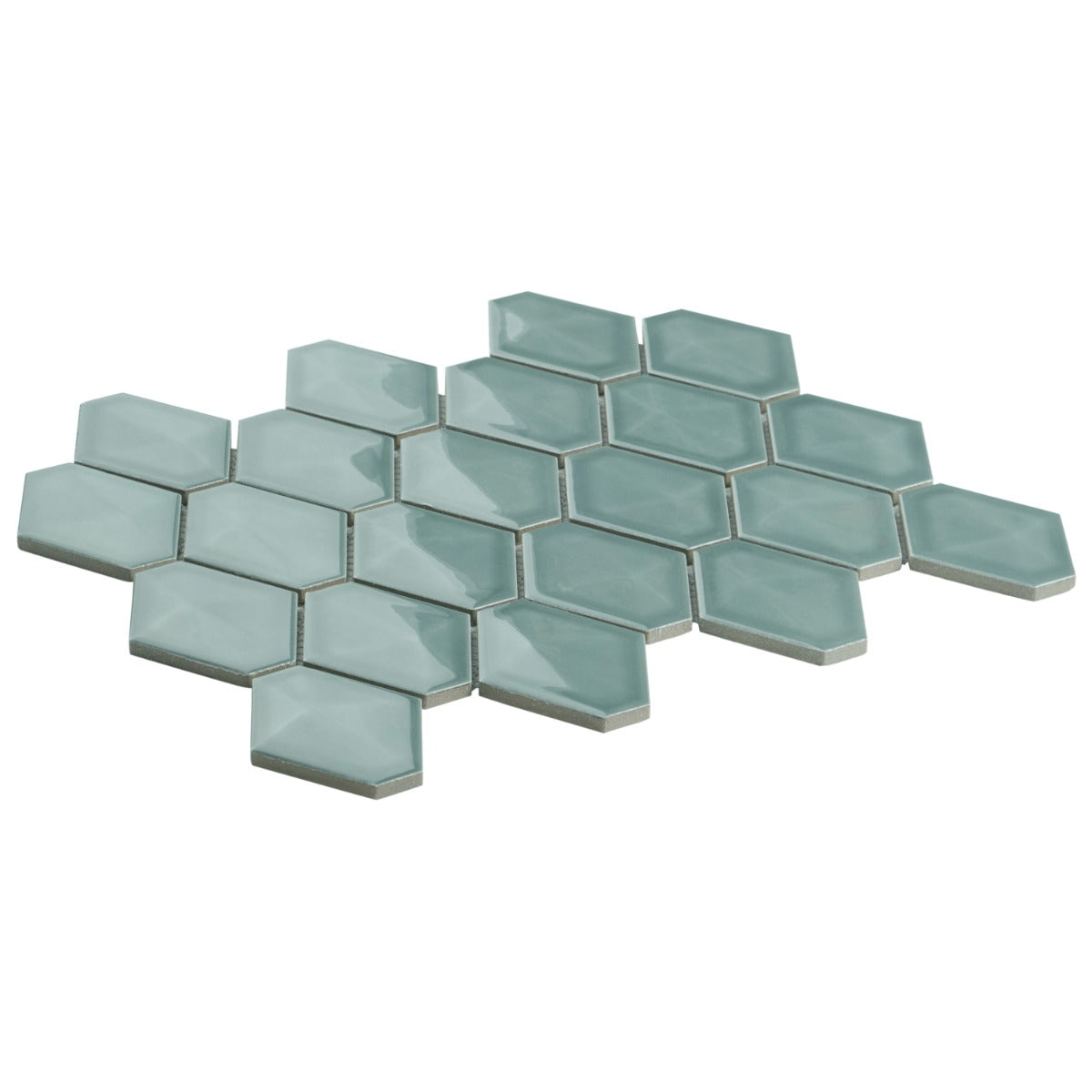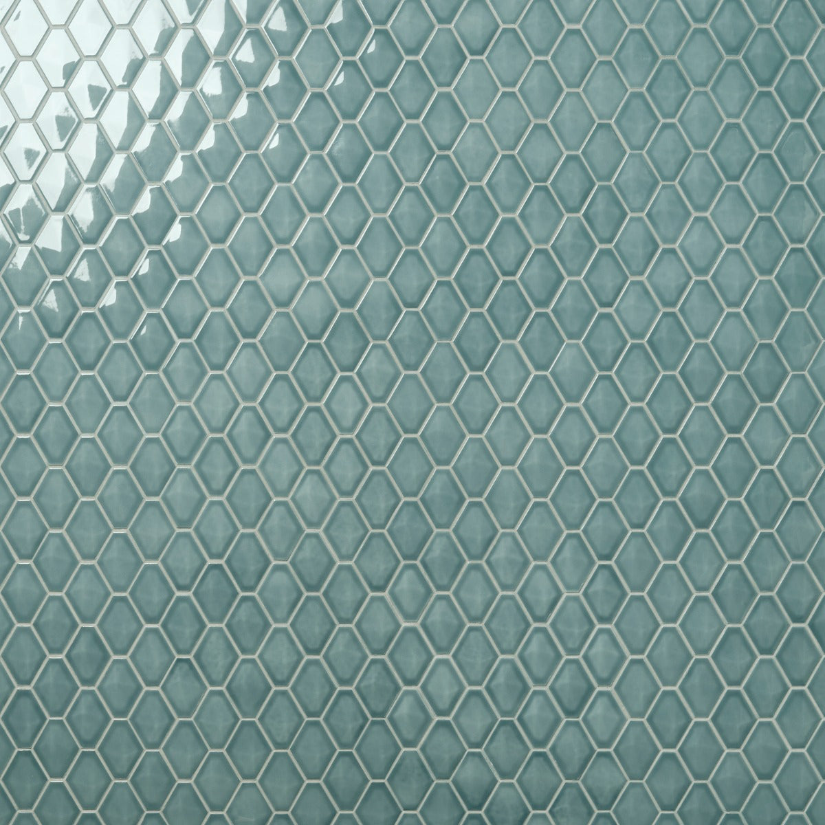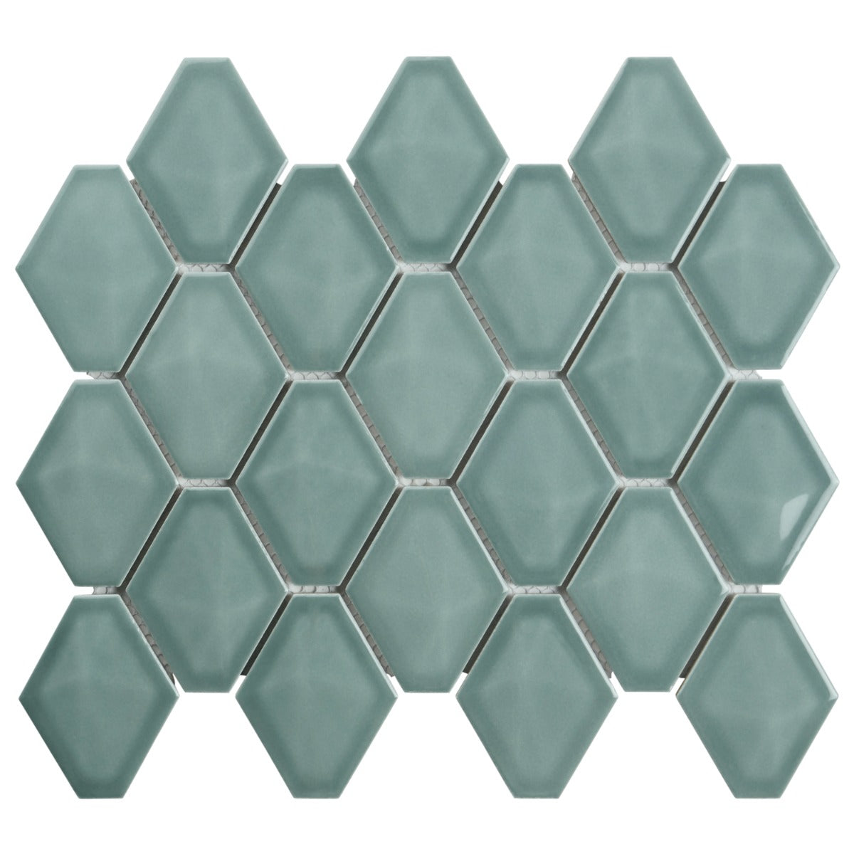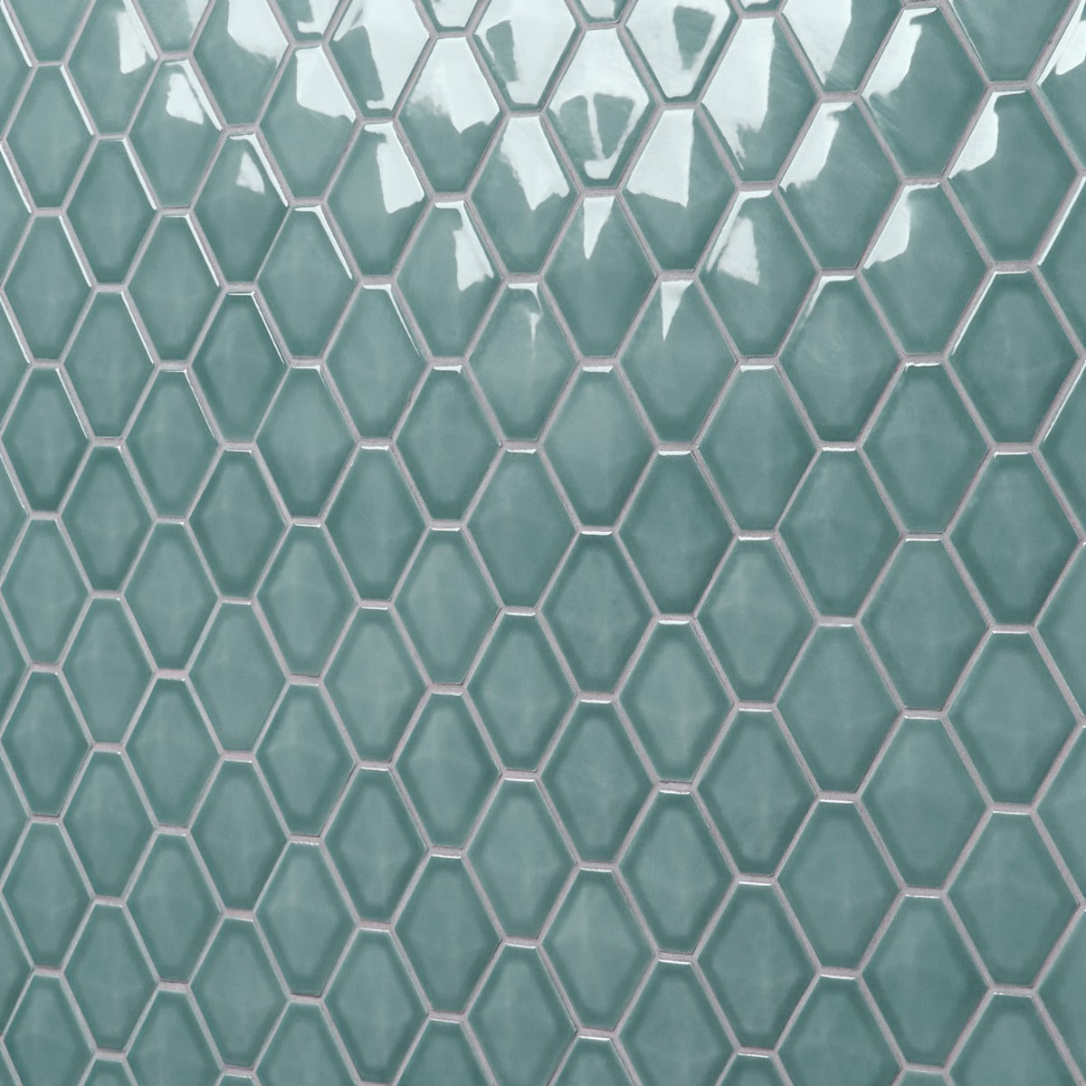 The Brookline Diamond Marine Blue Mosaic Tile features a glossy finish and a unique diamond pattern, perfect for adding a modern touch to any wall. Made from durable double-fired ceramic, it combines style and functionality effortlessly.
