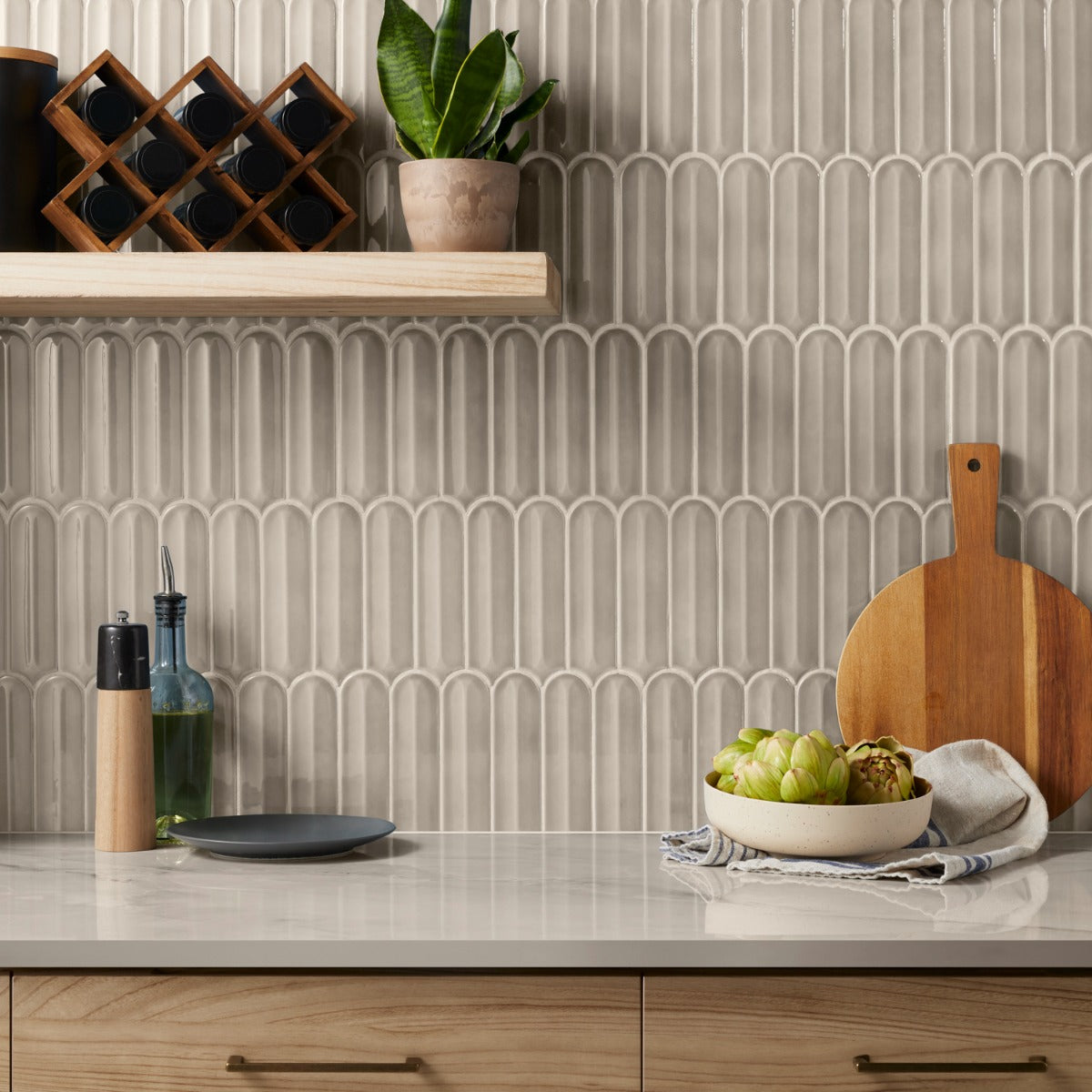 Transform your space with the Brookline Feather Warm Gray Fish Scale Tile—order now to elevate your design!