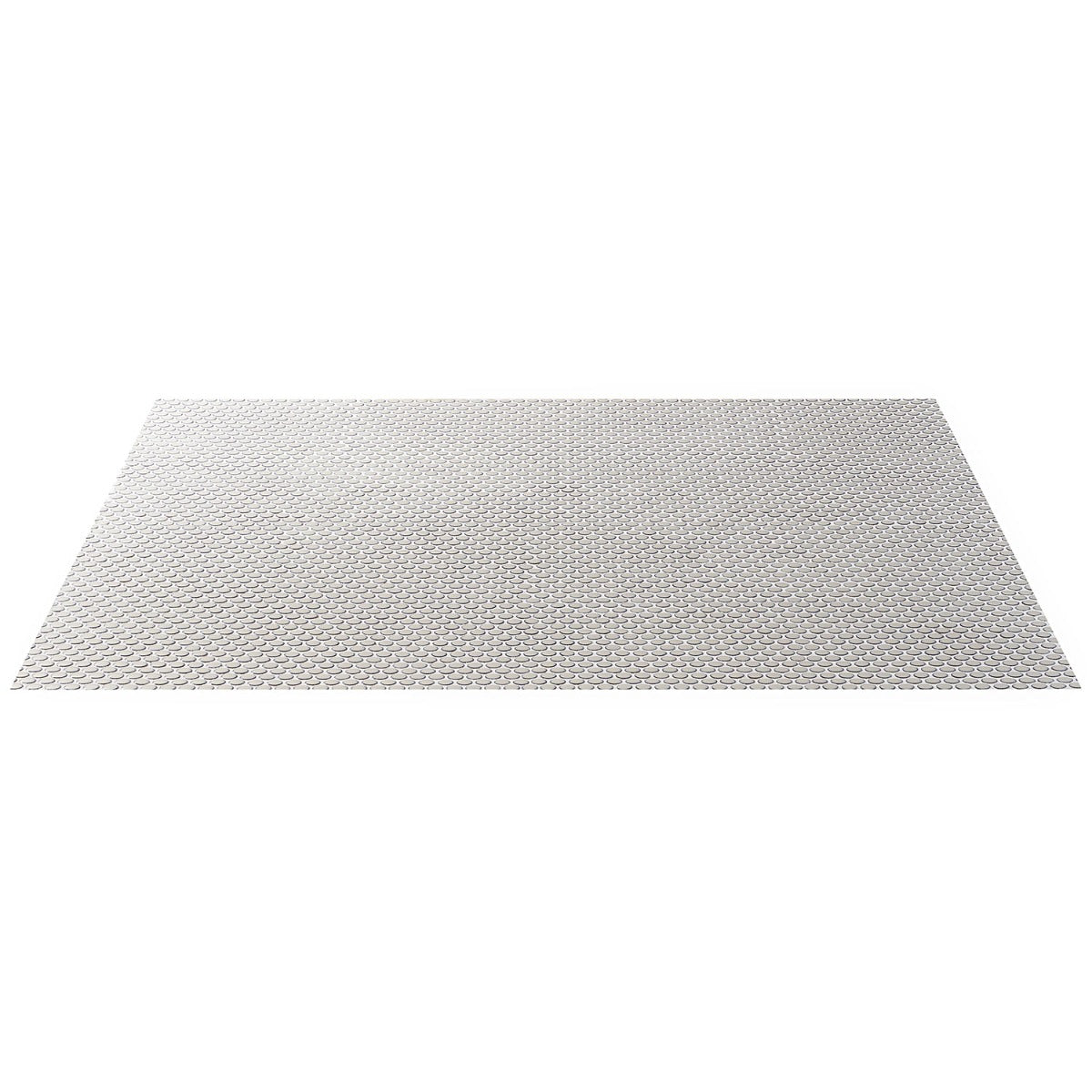 A: Each tile is 1 inch in diameter, arranged in a penny-round pattern.