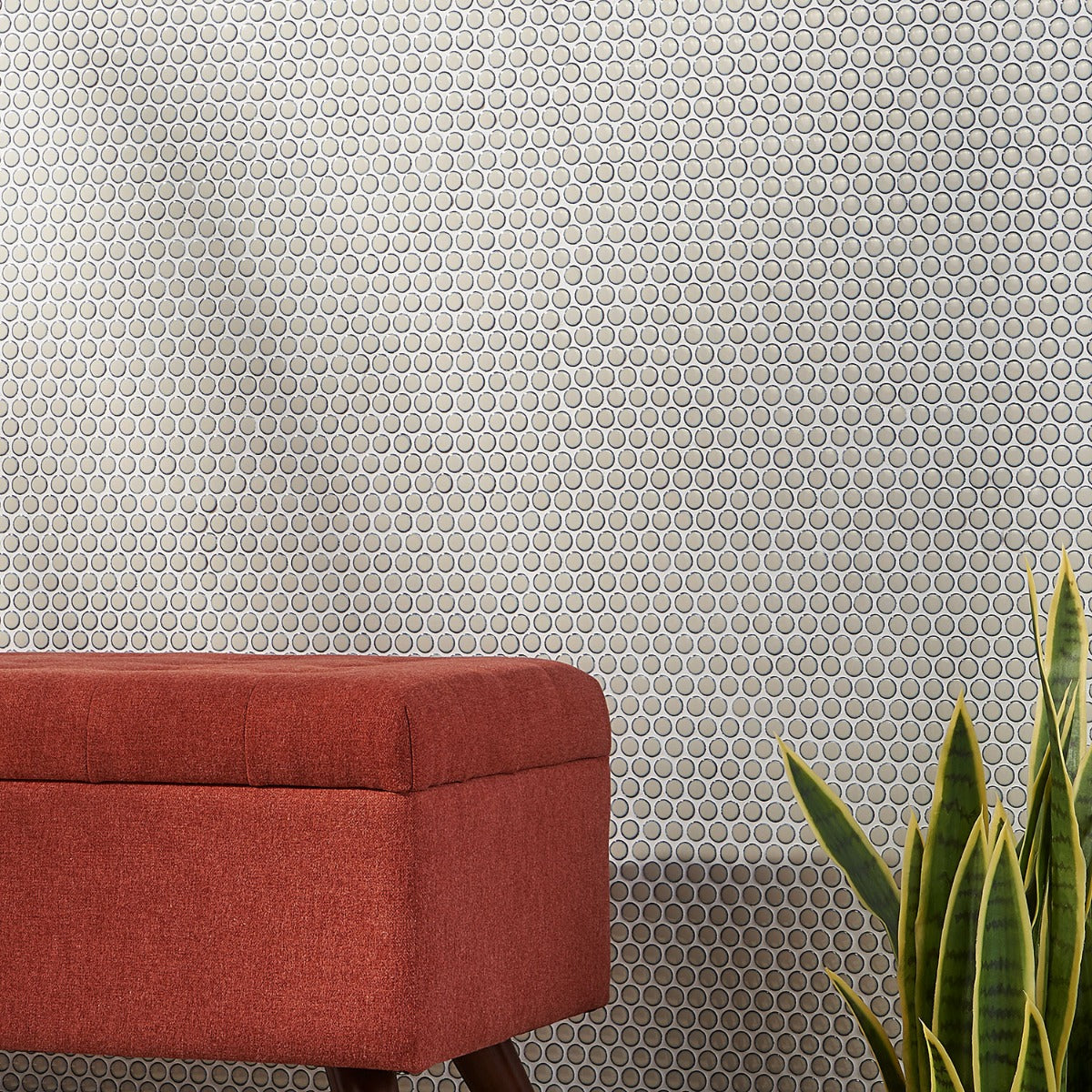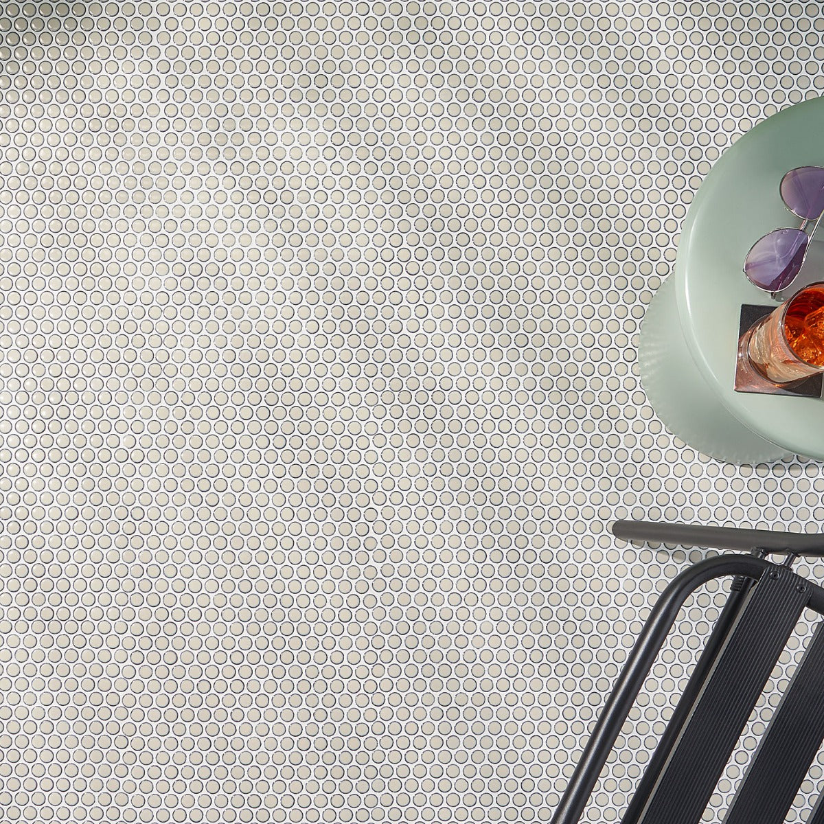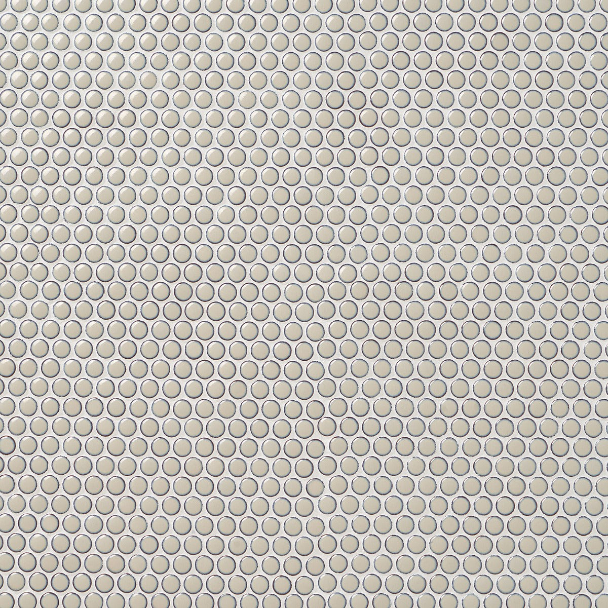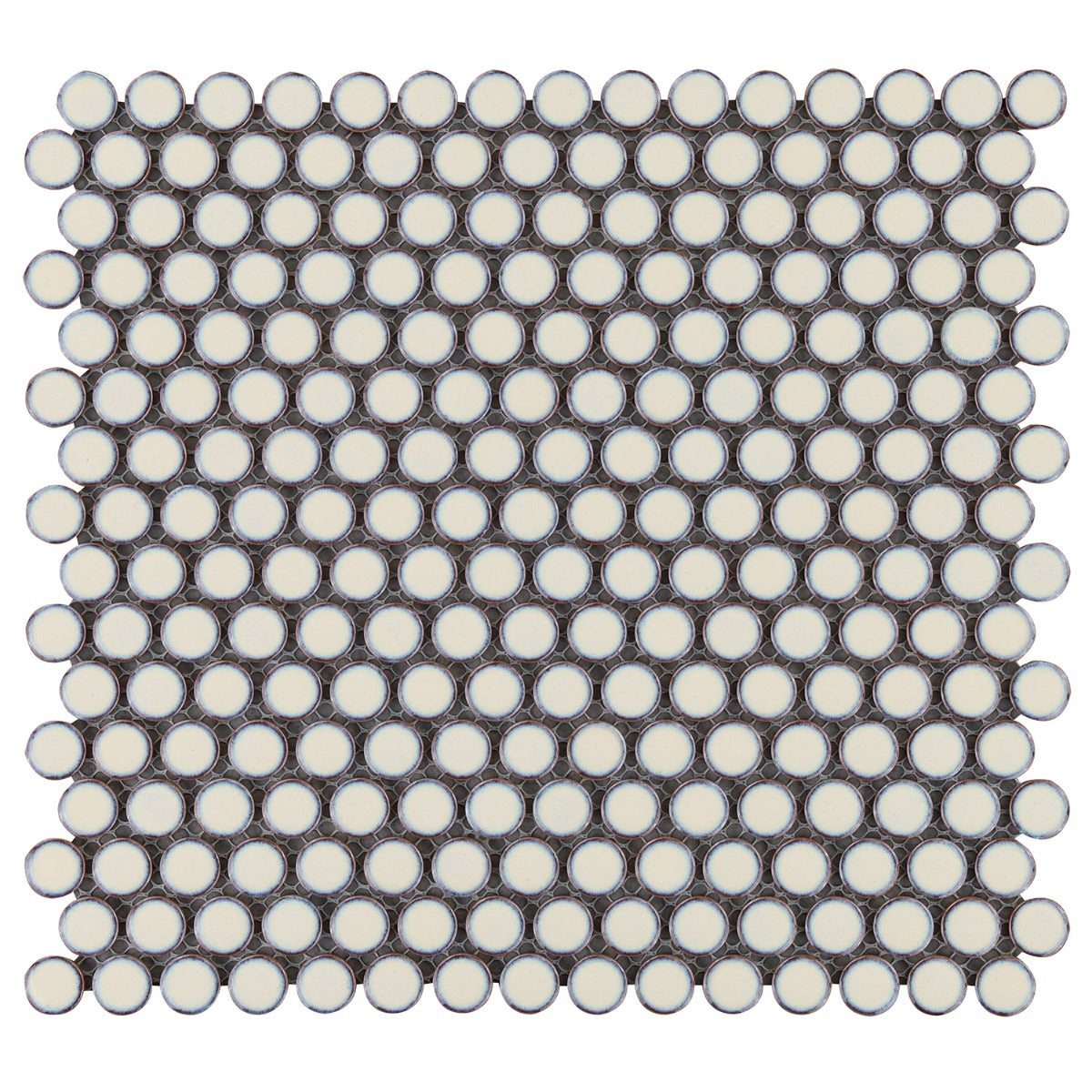 Eden Latte Beige Rimmed Penny Round Polished Porcelain Mosaic Tile