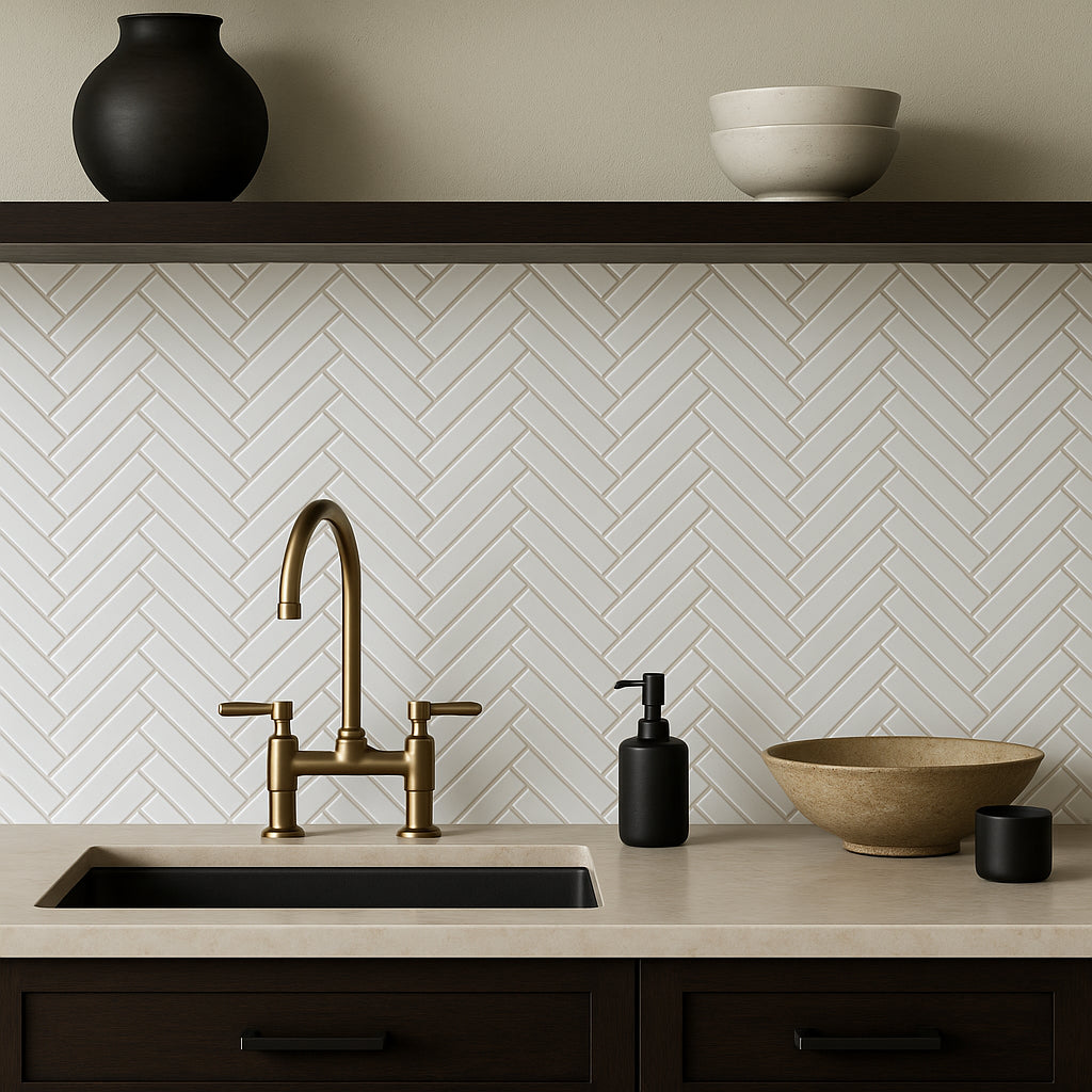 Transform your space with the elegant and durable Festival Glossy White Herringbone Porcelain Mosaic—order now to elevate your design!