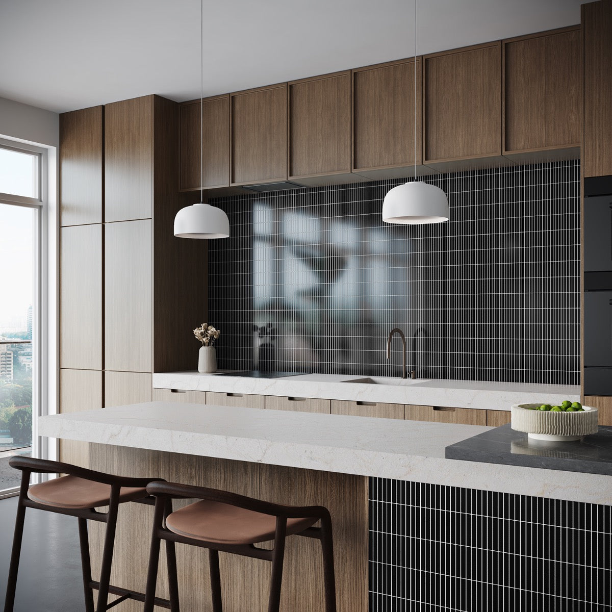 The Kai Black Glossy Porcelain Mosaic Tile is a masterpiece of modern design, blending deep black hues with a high-shine finish to create a striking visual impact. Its enchanting glaze pooling adds depth and character, making it a perfect choice for sophisticated interiors. Use it to craft a bold backsplash or a luxurious shower surround, and let its timeless appeal transform your space into a haven of style and refinement.