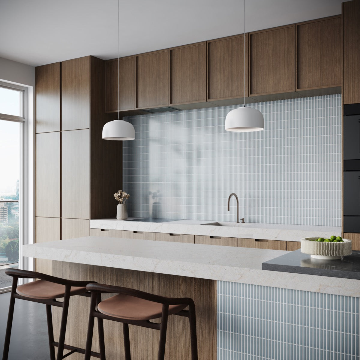 Kai Sky Blue 1x4" Tri-Stacked Glossy Porcelain Mosaic Tile