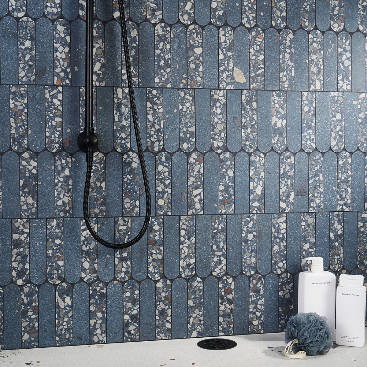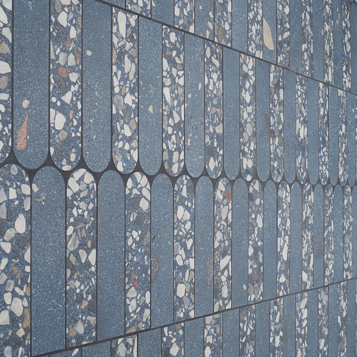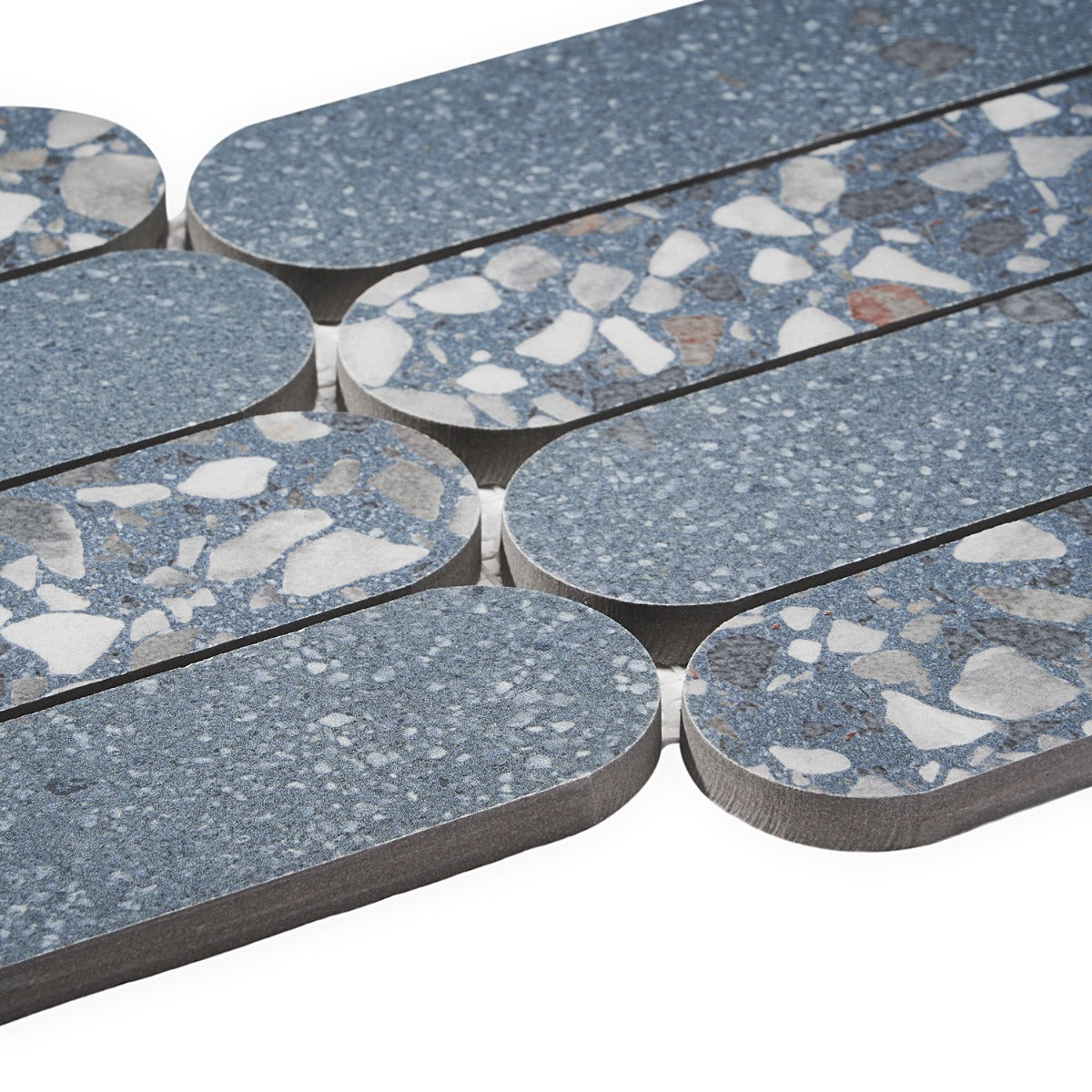 Kobe Fin Ocean Blue Terrazzo Look Matte Porcelain Mosaic Tile - Lux Tile