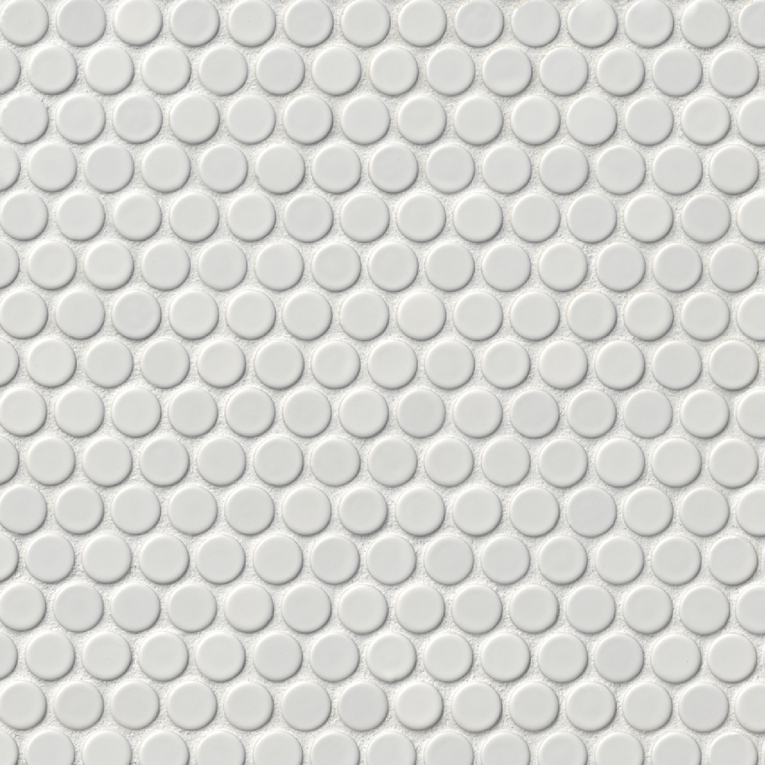 Soft, cloudy white circles define our Penny Round Matte White Porcelain Mosaic Wall and Floor Tile, crafted to elevate your living spaces with understated elegance.