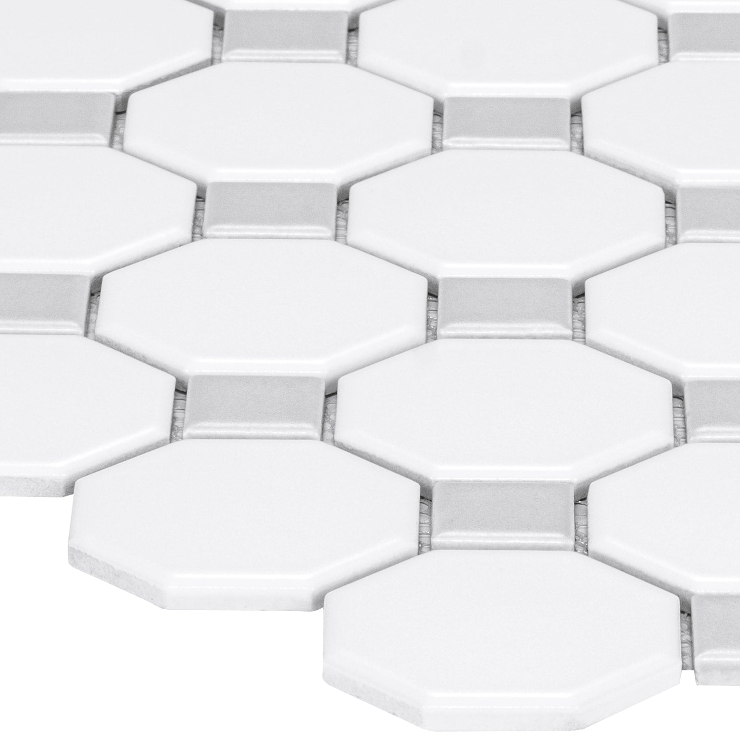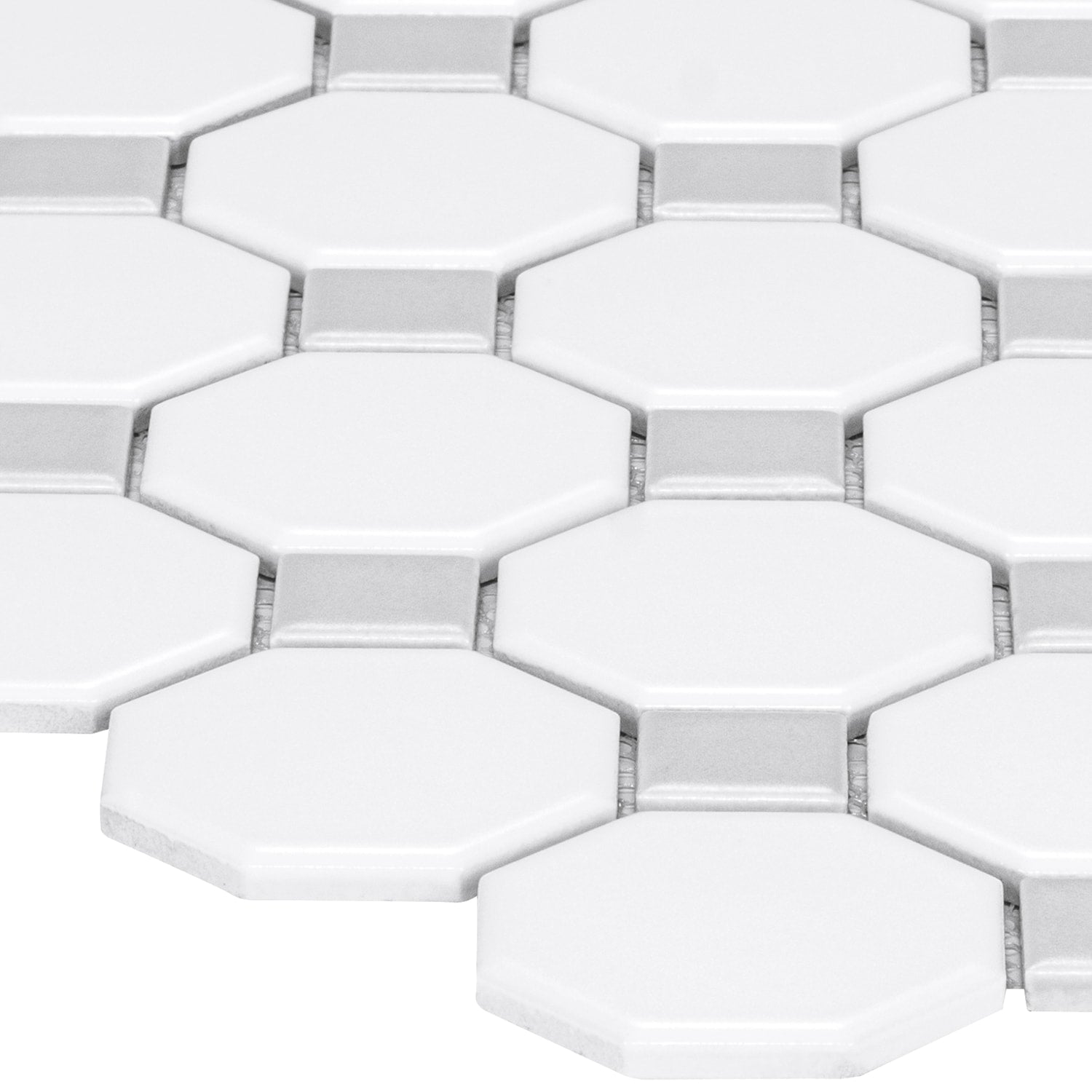 Satori Hudson Brilliant White and Gray 12-in x 12-in Matte Porcelain Mosaic Floor and Wall Tile (0.91-sq. ft/ Piece)