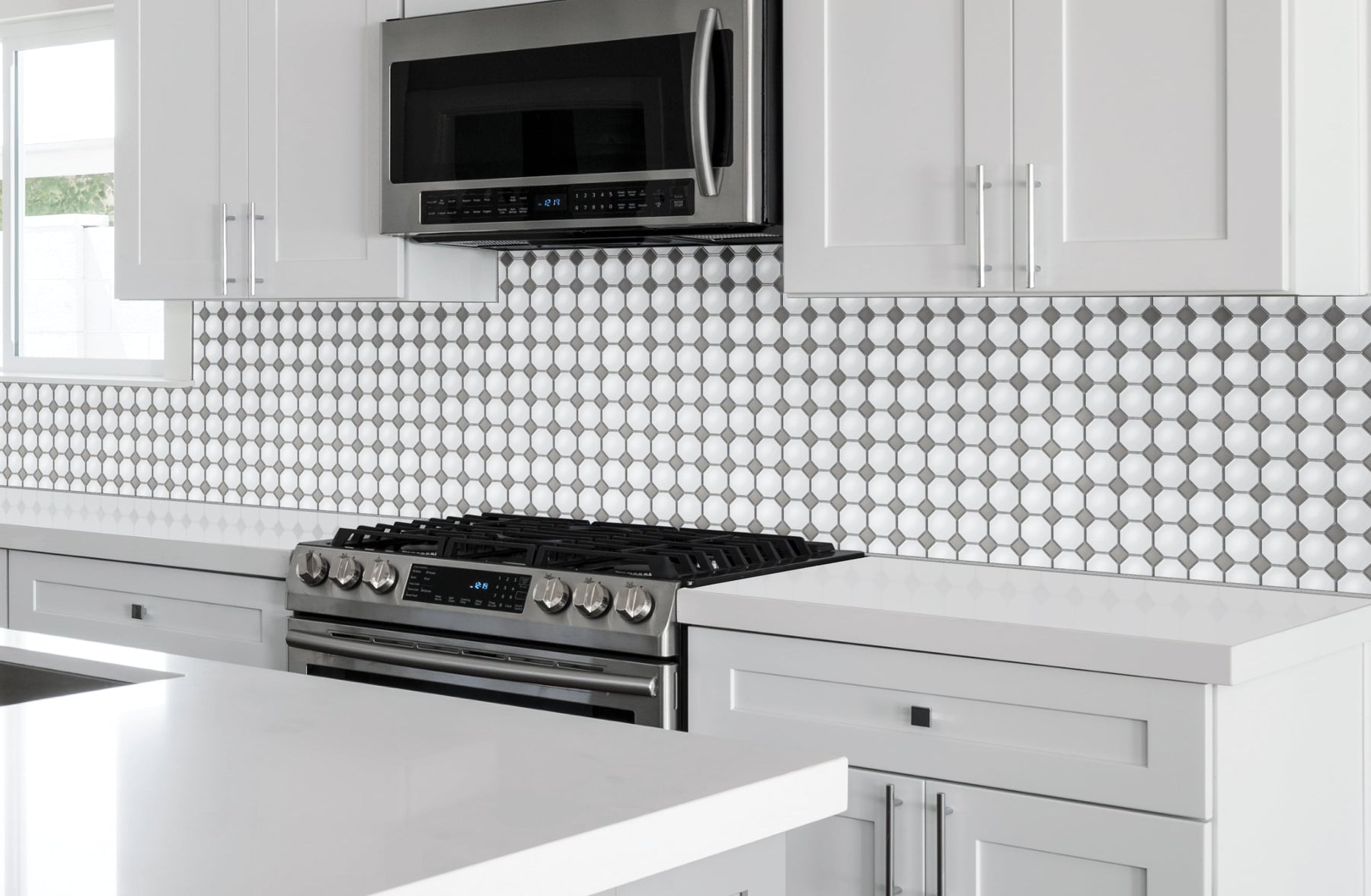Elevate your interiors with the Satori Hudson Brilliant White and Gray Matte Porcelain Mosaic Tile. This 12x12 tile offers a sleek and modern aesthetic with a high-end matte finish that ensures both style and safety with its slip resistance. Perfect for both residential and commercial spaces, its durable, waterproof design makes it ideal for kitchens, bathrooms, and even exterior wall installations.