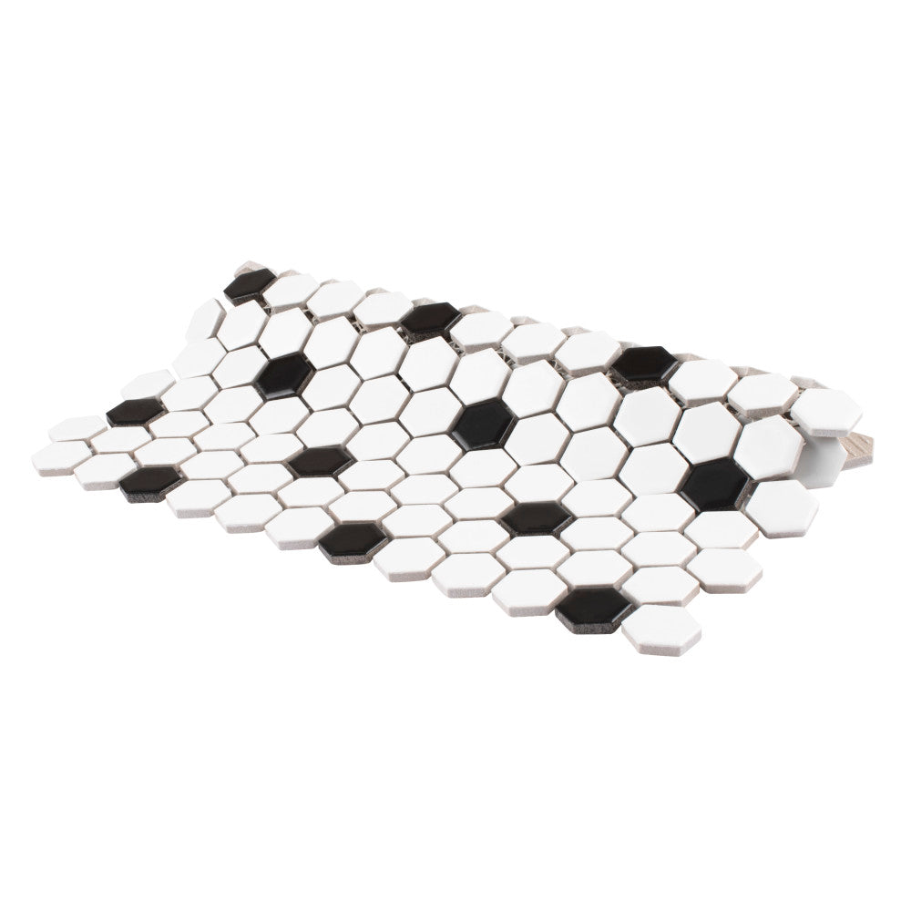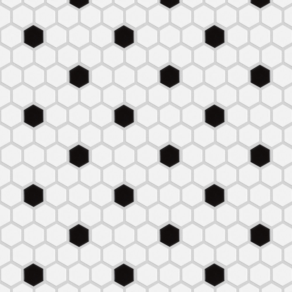 Madison 1" Hex Cool White/Black Dot Porcelain Mosaic Tile