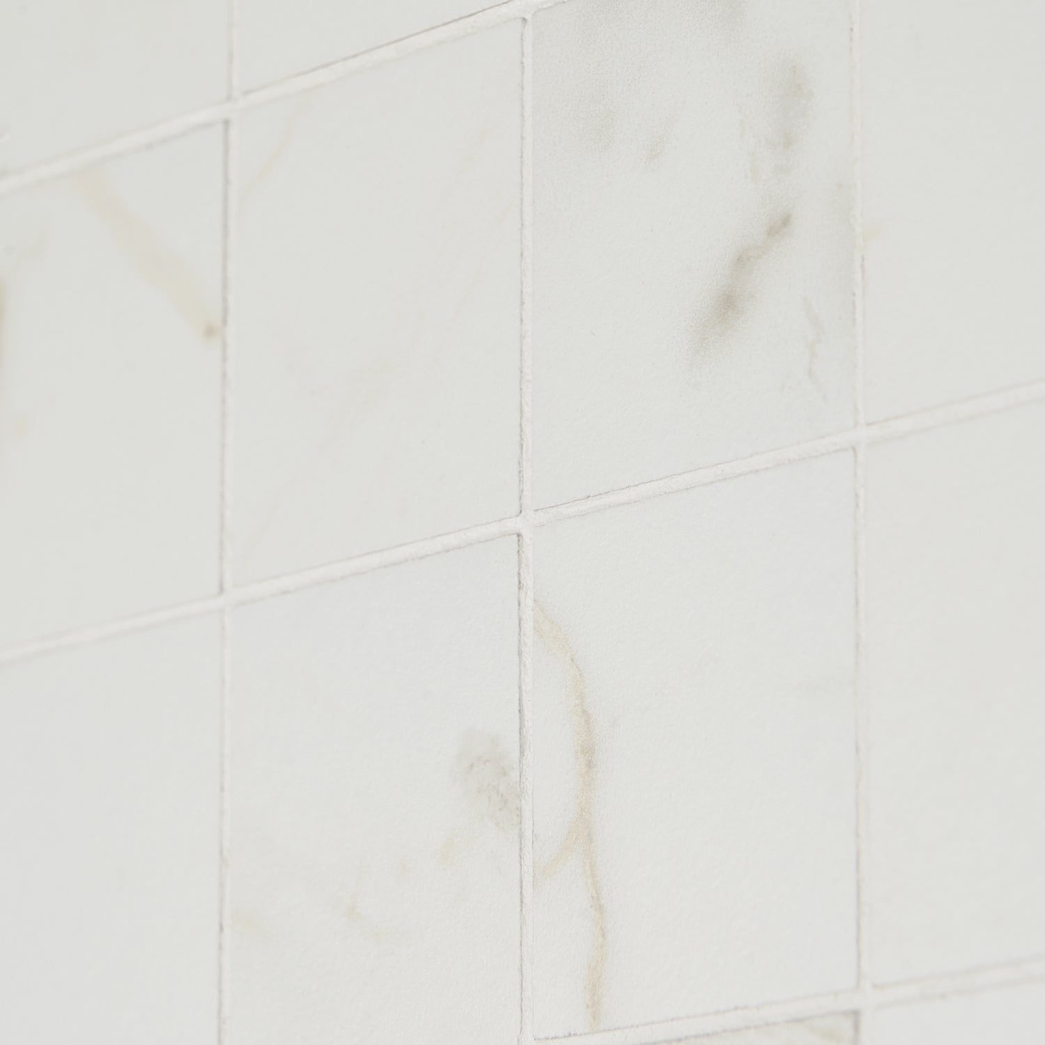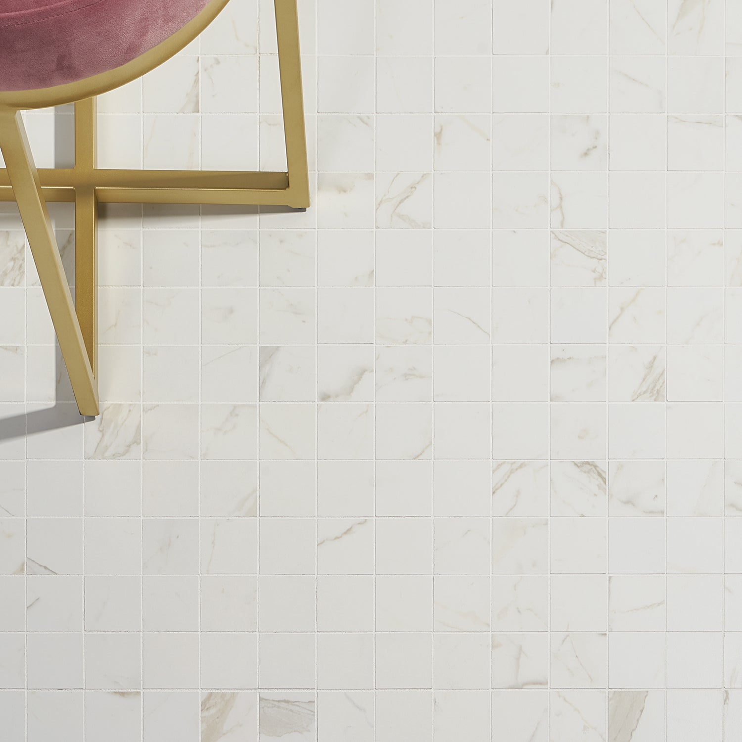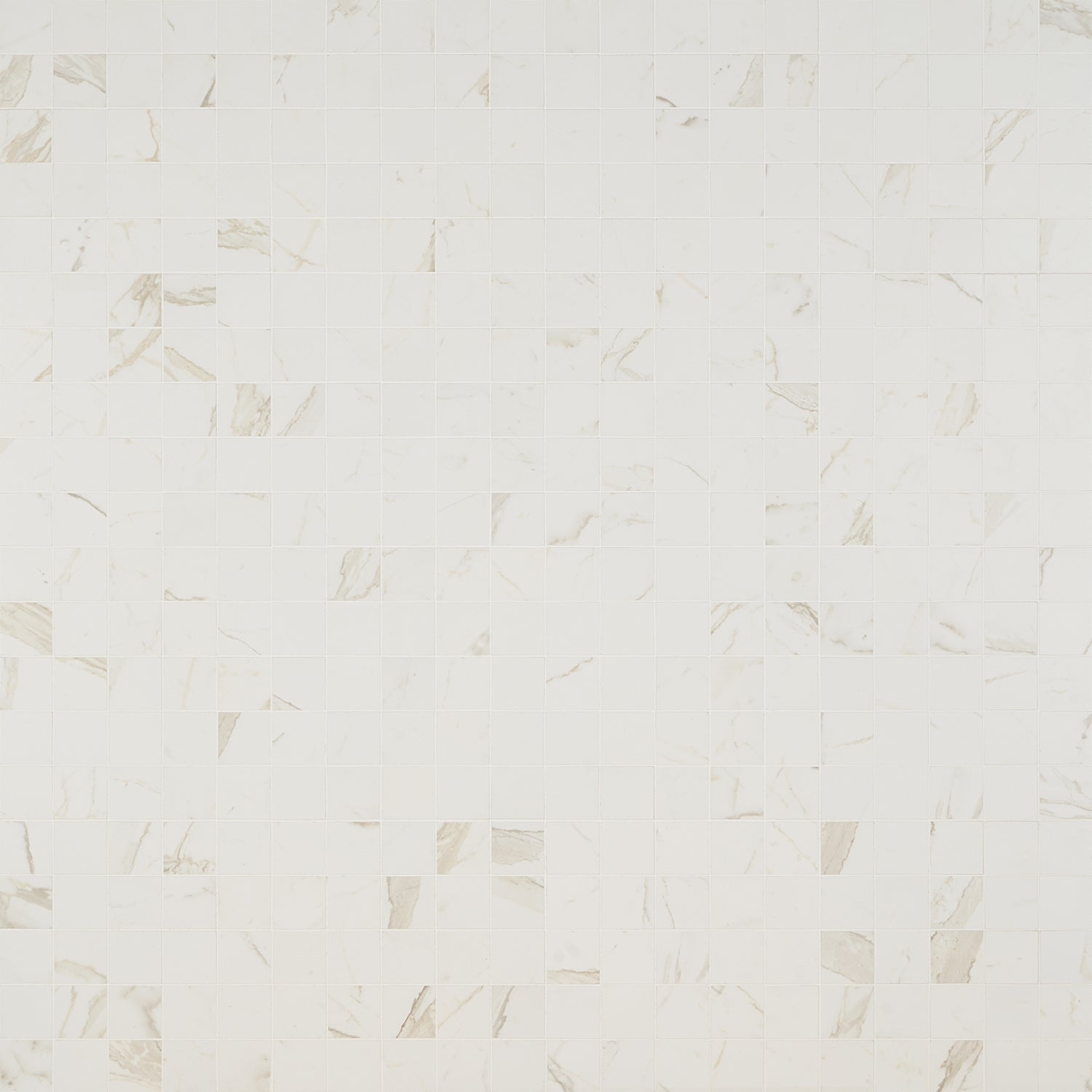 Transform your space with the luxurious look of Calacatta Oro marble in a durable porcelain mosaic tile.