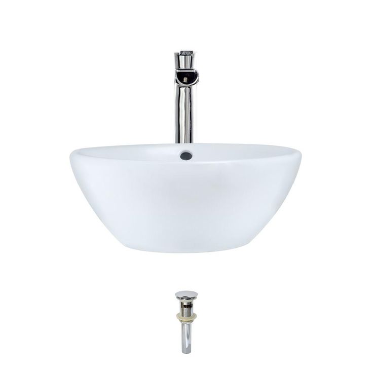 MR Direct Porcelain Vessel Sink in White with 731 Faucet and Pop-Up Drain in Chrome
